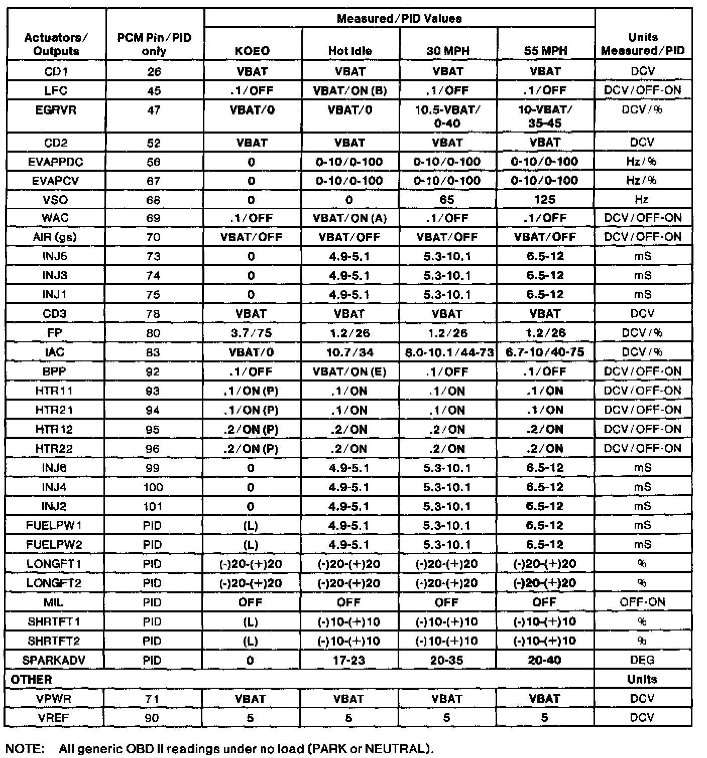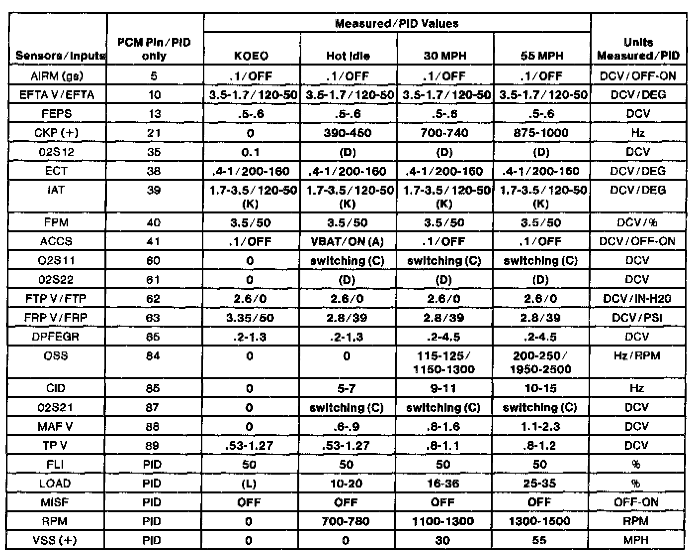 - The Typical Diagnostic Reference Value Charts do not display fault PIDs. These are PIDs which indicate a hard fault with the circuit. They display a value of "YES" or "NO" and are PIDs ending with an "F".