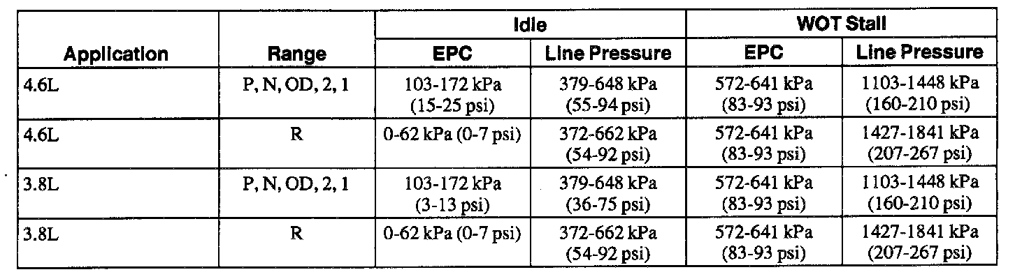 5. Start engine and check EPC pressure. Refer to the Line Pressure Chart for specifications.