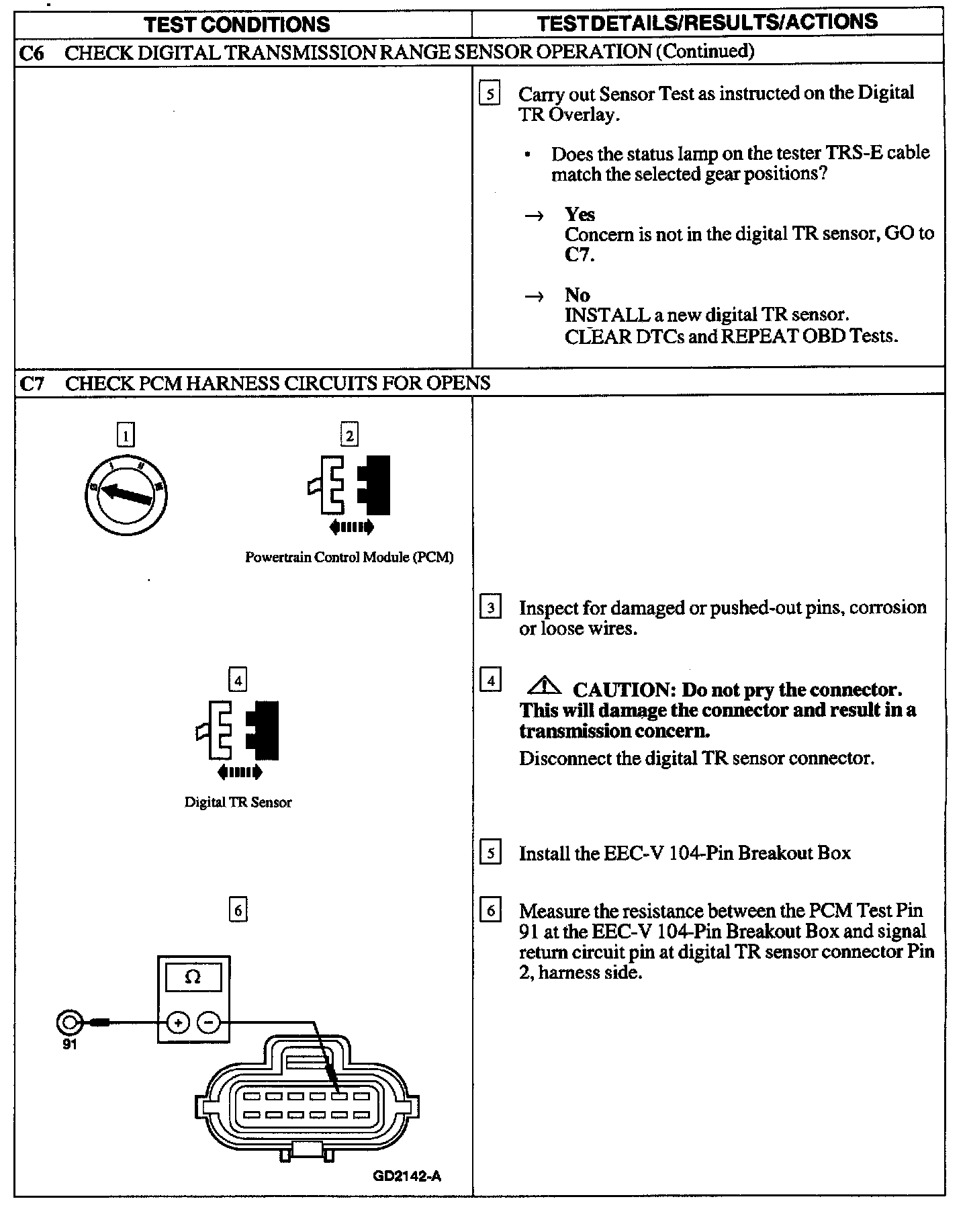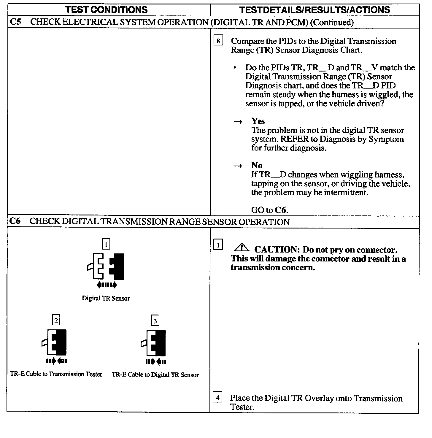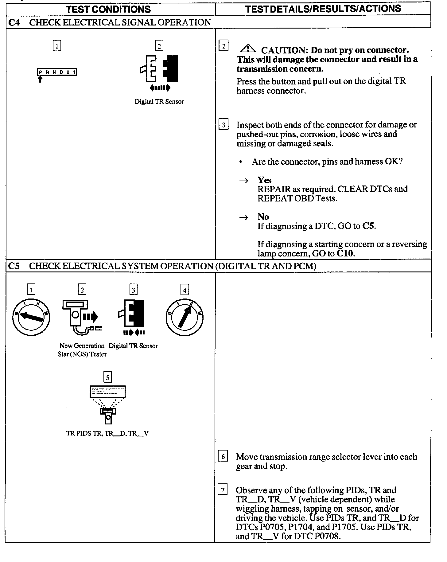 Pinpoint Test C: DIGITAL TRANSMISSION RANGE (TR) SENSOR