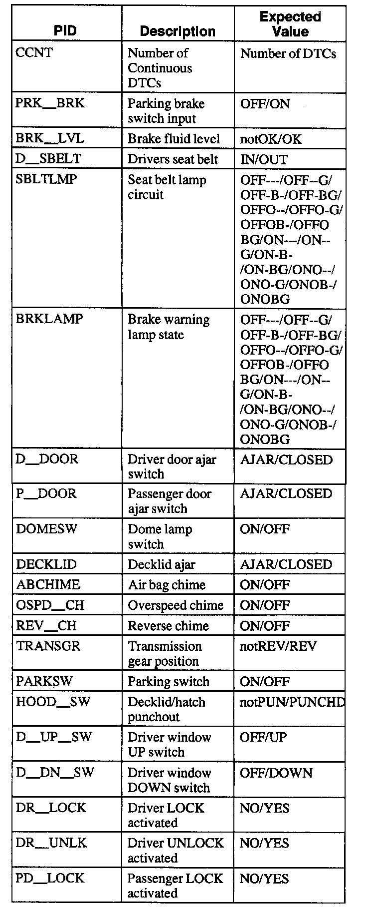 Diagnostic Trouble Code Descriptions