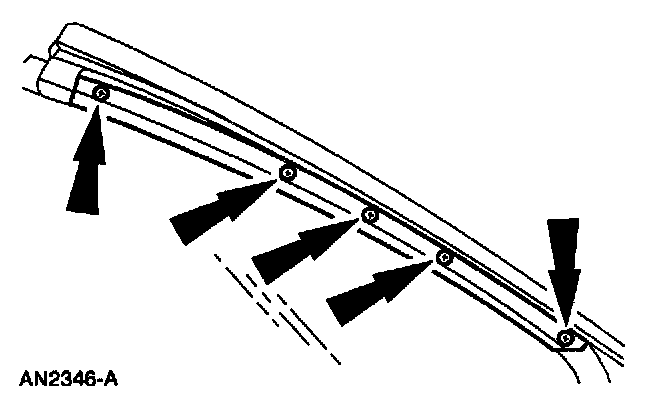 10 Apply the new Urethane Adhesive WSB-M2G316-A or equivalent in an even bead onto the existing urethane on the pinch weld. The applied bead should be triangular in shape and 16 mm (0.625 inch) high and 8 mm (0.33 inch) at the base.