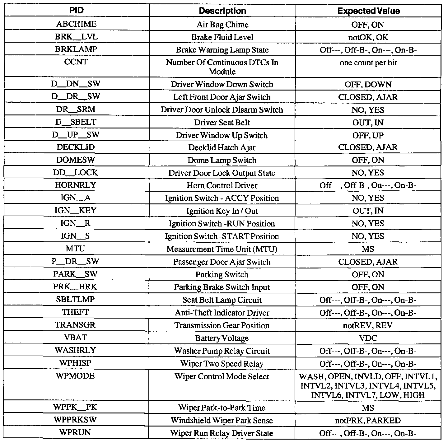 Diagnostic Trouble Code Descriptions