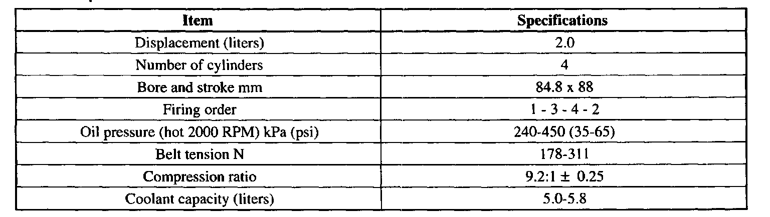 Contour L4-122 2.0L DOHC VIN 3 SFI