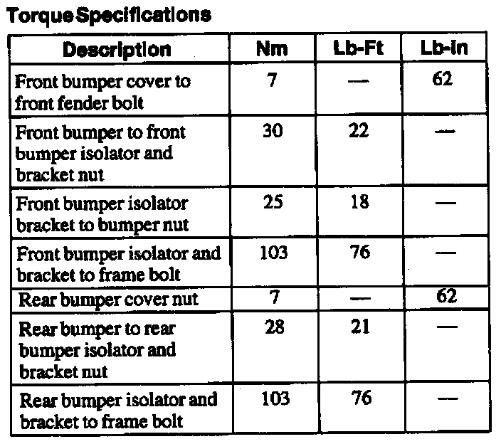 Torque Specifications: