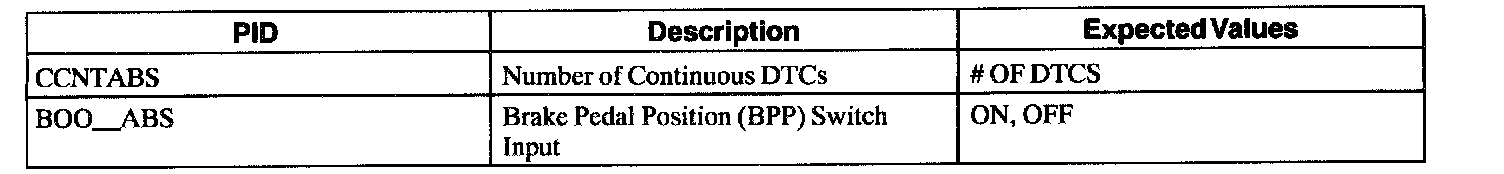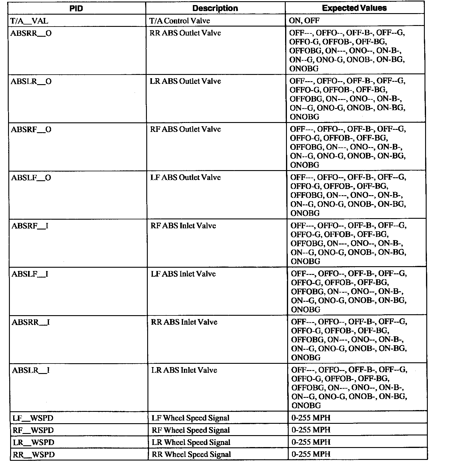 Anti-Lock Brake Control Module Parameter Identification (PID) Index
