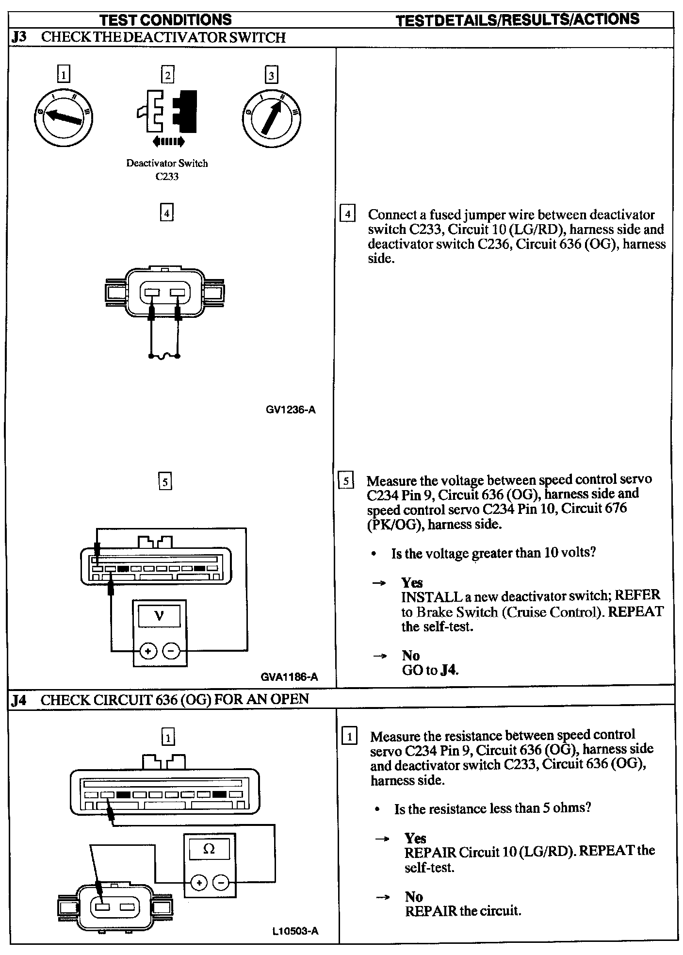 Test J: Flash Code 3 - Deactivator Switch Circuit Failure