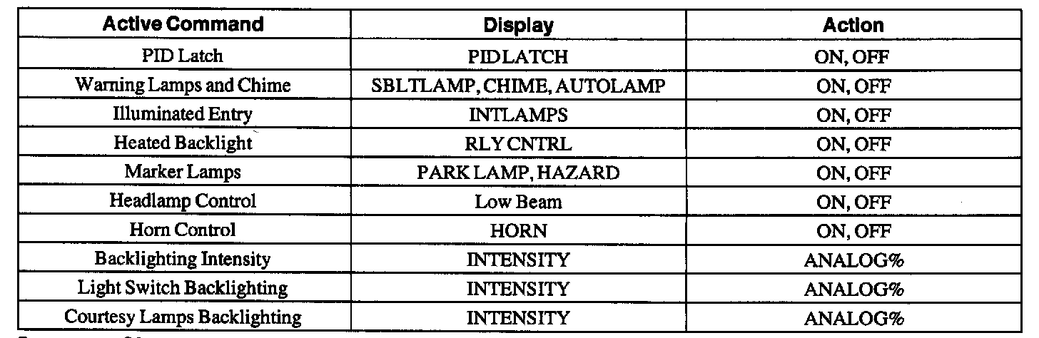 Lighting Control Module (LCM) Active Command Index