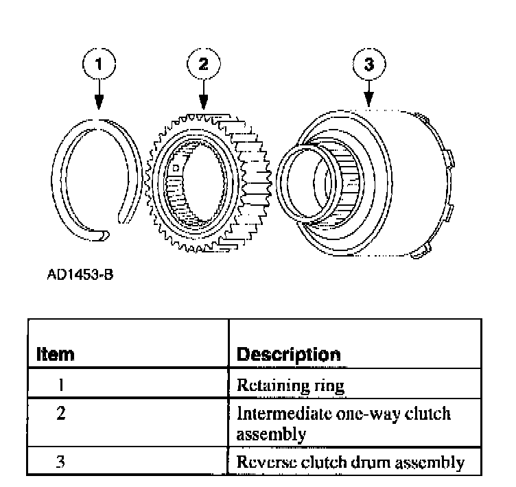 The intermediate one-way clutch works with the intermediate friction clutch to hold the reverse clutch drum and reverse sun gear stationary in second gear during acceleration. The intermediate one-way clutch freewheels in third gear and during coasting in second gear, O/D and D ranges.
