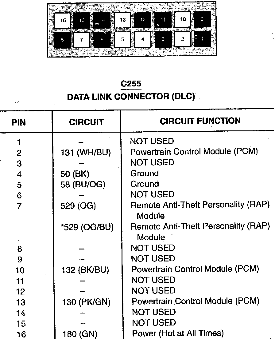 Data Link Connector: Diagrams