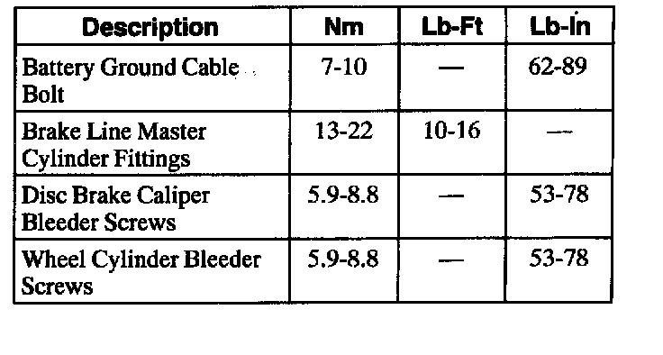 Torque Specifications