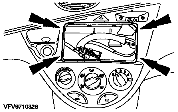 1. Remove the radio/cassette player and CD player (if fitted). For additional information, refer to Radio,Stereo and Compact Disc.