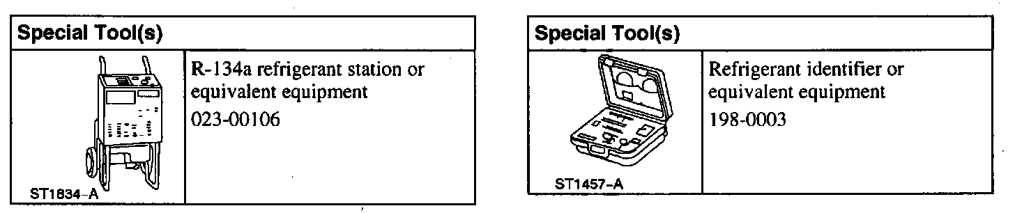 CAUTION: The refrigerant identifier must be used before the system is evacuated, otherwise the service station may become contaminated. Contaminated refrigerant must be disposed of as special waste. The manufacturer's instructions must be followed when dealing with the service station.