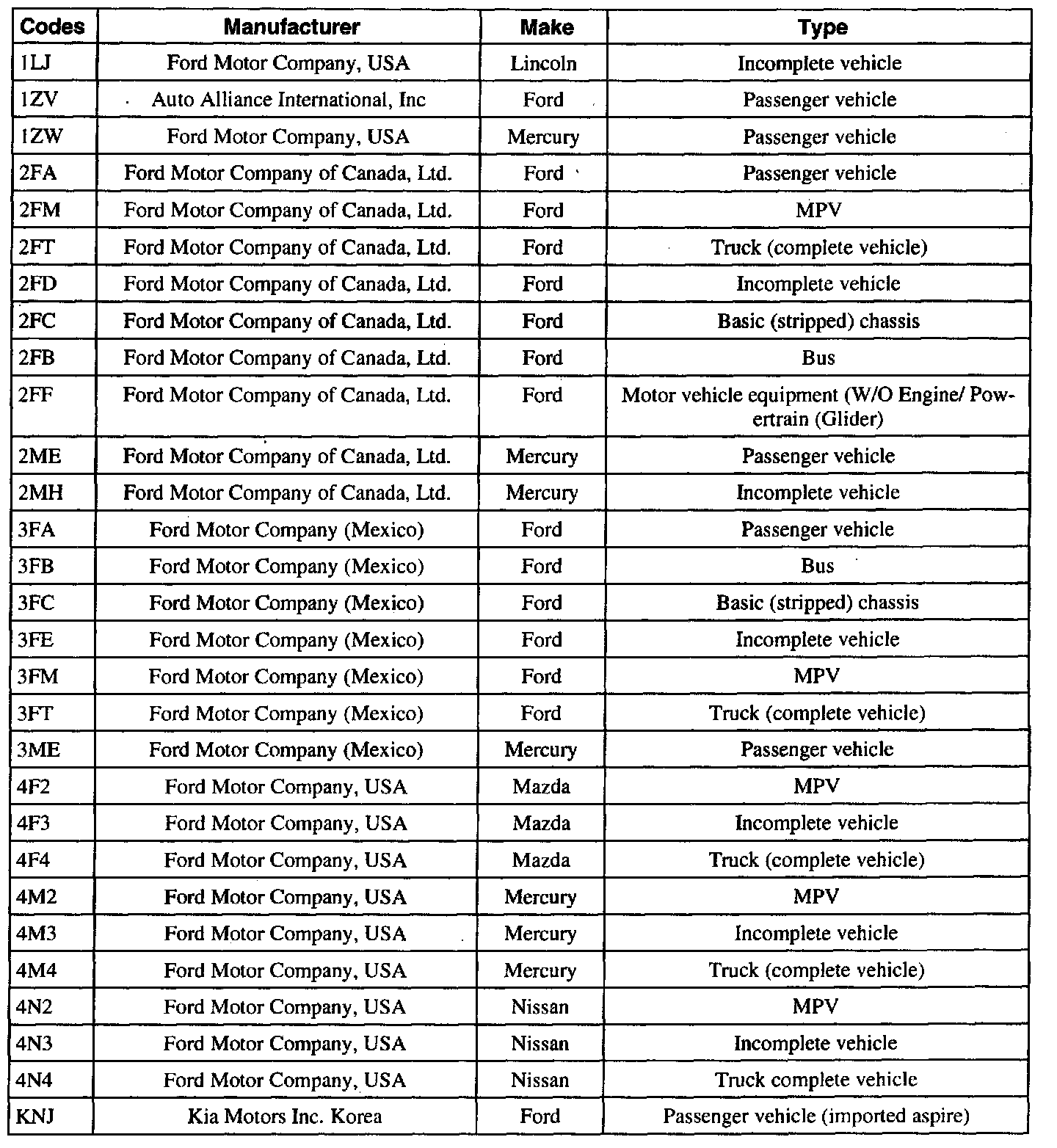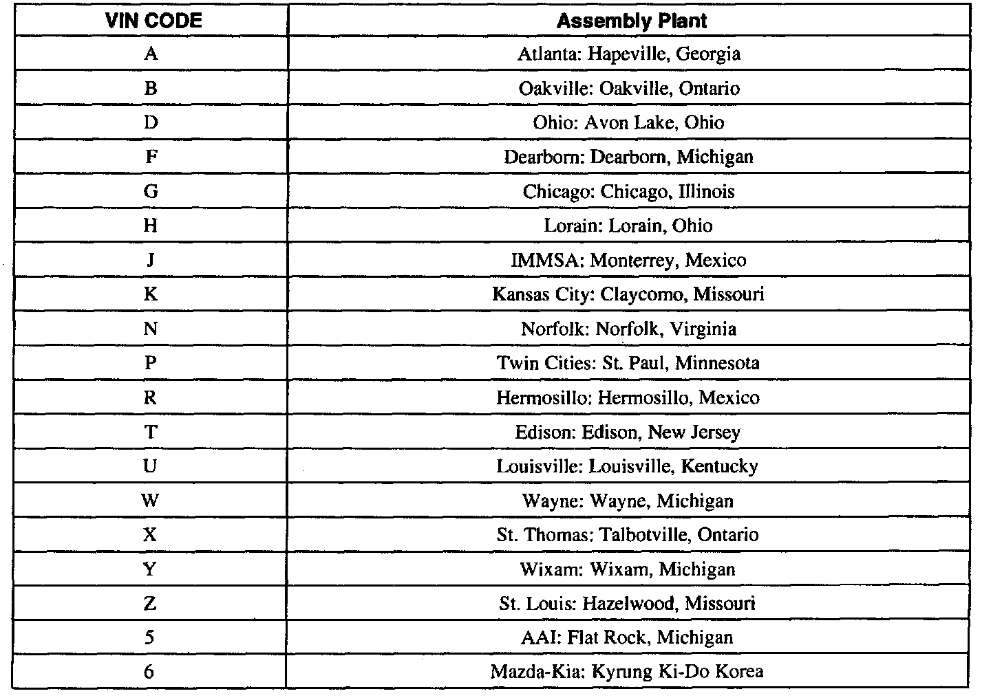 IDENTIFICATION CODESThe vehicle identification number (VIN) for registration purposes is stamped onto the body on the right-hand side floor panel.