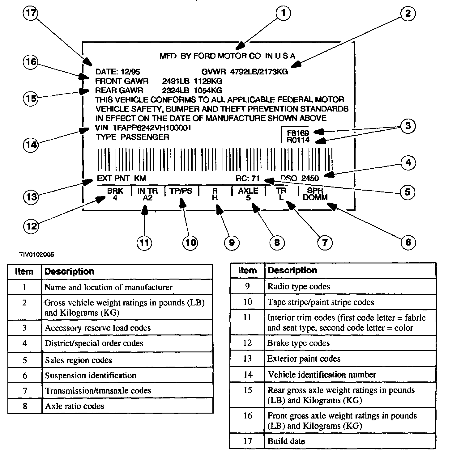 The vehicle identification number is also located on the vehicle certification label. The vehicle certification label is positioned on the left-hand B-pillar above the latch.