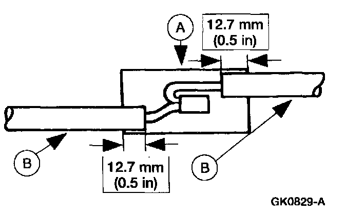 5. Position the (A) heat shrink tube over the (B) wire repair.