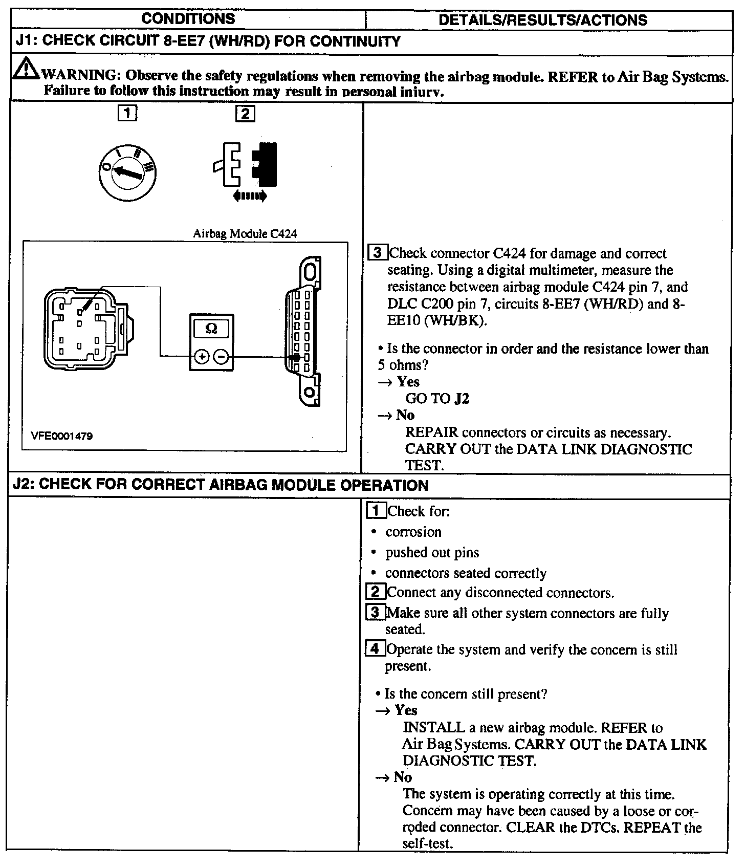 Test J: Airbag Module Does Not Respond to the Scan Tool