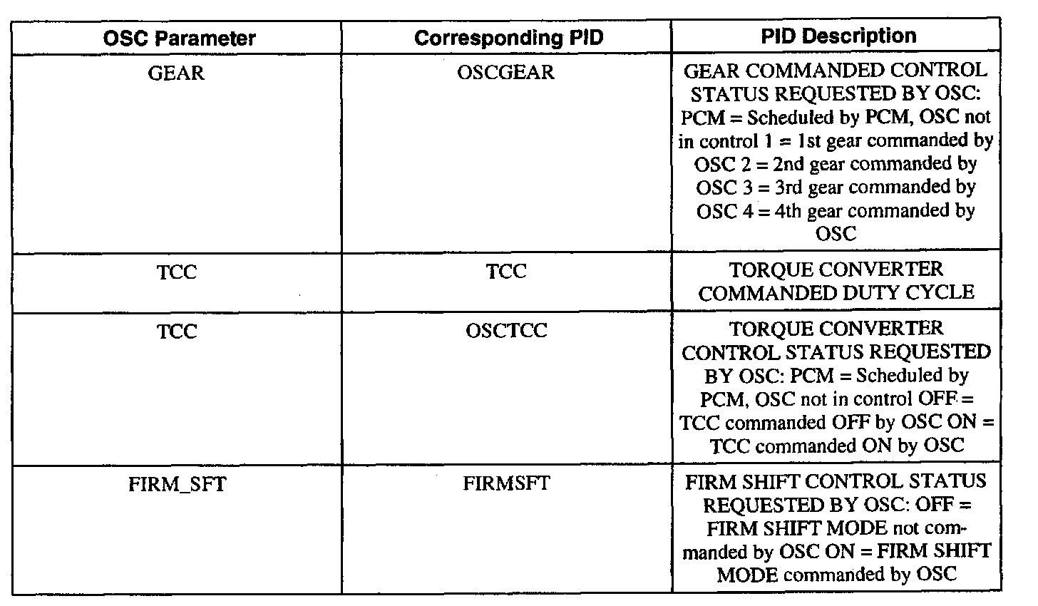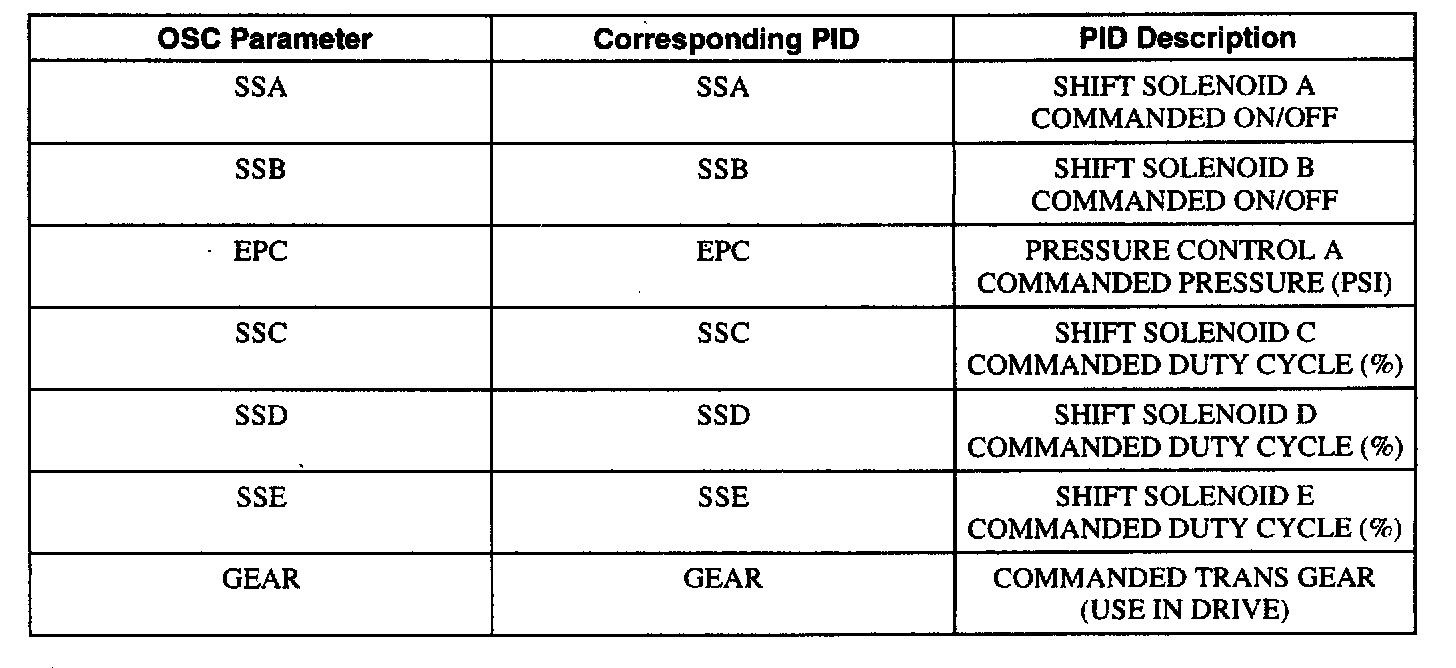 To confirm that the OSC value was sent by the NGS and the PCM has accepted the OSC substitution, a corresponding PID or PIDs for each OSC parameter should be monitored. Additional PIDs should be monitored to help the technician adequately diagnose the transaxle.