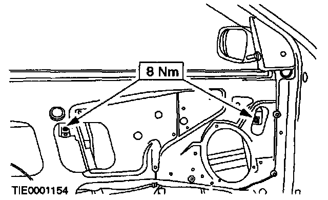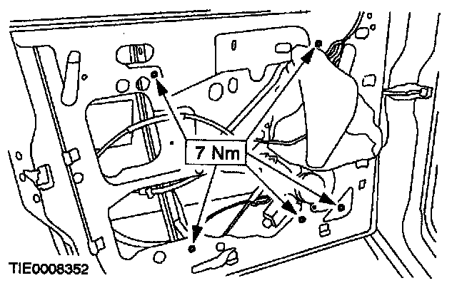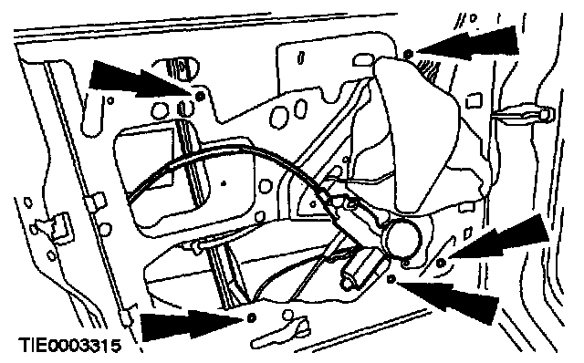 9. Remove the window glass retaining bolts. Align the retaining bolts with the access holes.