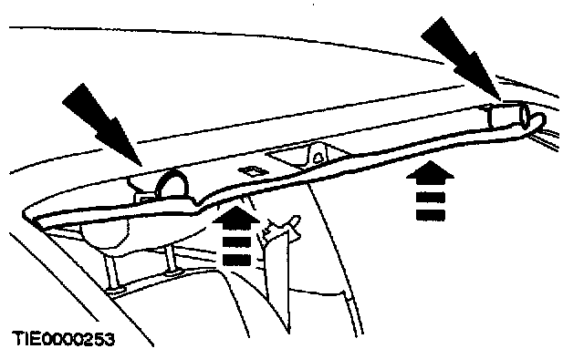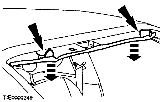 ^ Place two blocks of suitable material between the headliner and the roof panel to act as spacers.