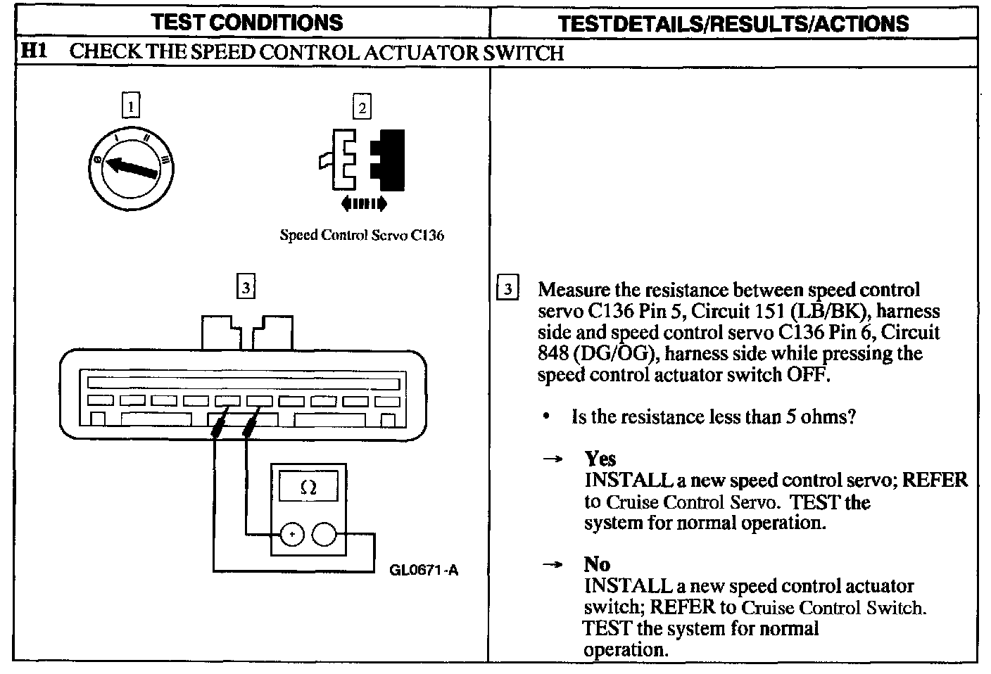 Test H: Speed Control Switch Is Inoperative - OFF