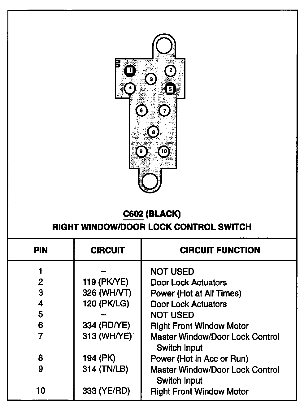 Right Window/Door Lock Control Switch
