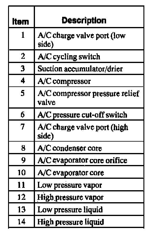 During stabilized conditions (air conditioning system shut down), the refrigerant is in a vaporized state and pressures are equal throughout the system. When the A/C compressor is in operation, it increases pressure on the refrigerant vapor, raising its temperature. The high-pressure and high-temperature vapor is then released into the top of the A/C condenser core.
