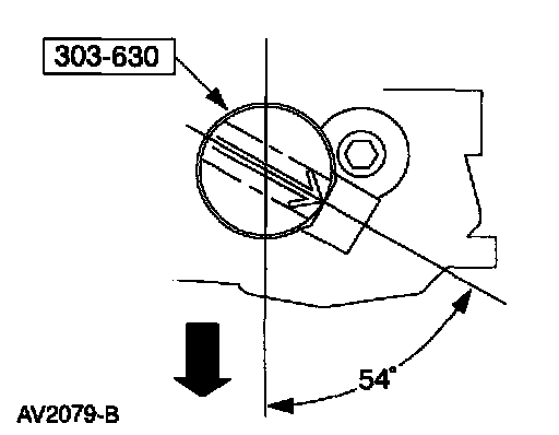 2. Install the camshaft synchronizer housing assembly so the arrow on the special tool is 54 degrees from the center line of the engine.