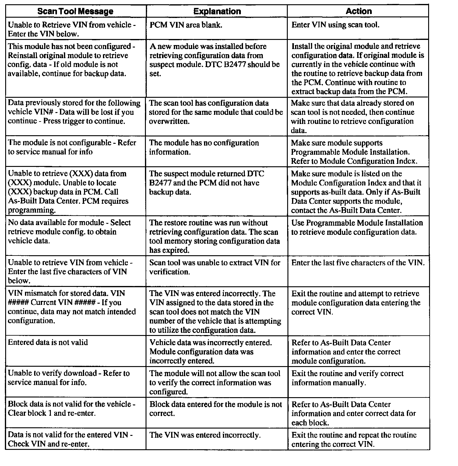 Scan Tool Message Index