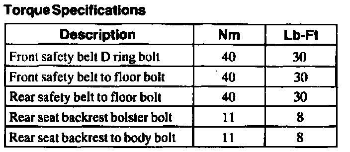 Torque Specifications: