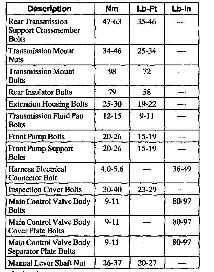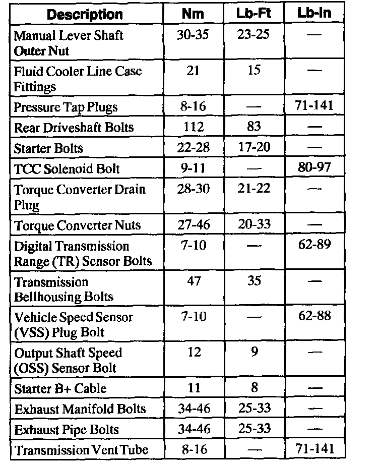 Torque Specifications