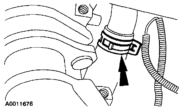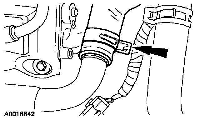 13. Disconnect the compressor hose and tube assembly spring lock coupling. Remove and discard the O-ring seal.