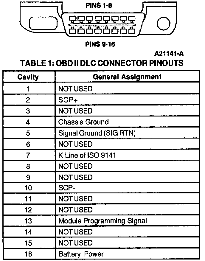 The OBD II DLC is rectangular in design and capable of accommodating up to 16 terminals. The connector has keying features to allow easy connection. The vehicle connector and the test equipment connector have latching features that ensure the test equipment connector will remain mated when properly connected.