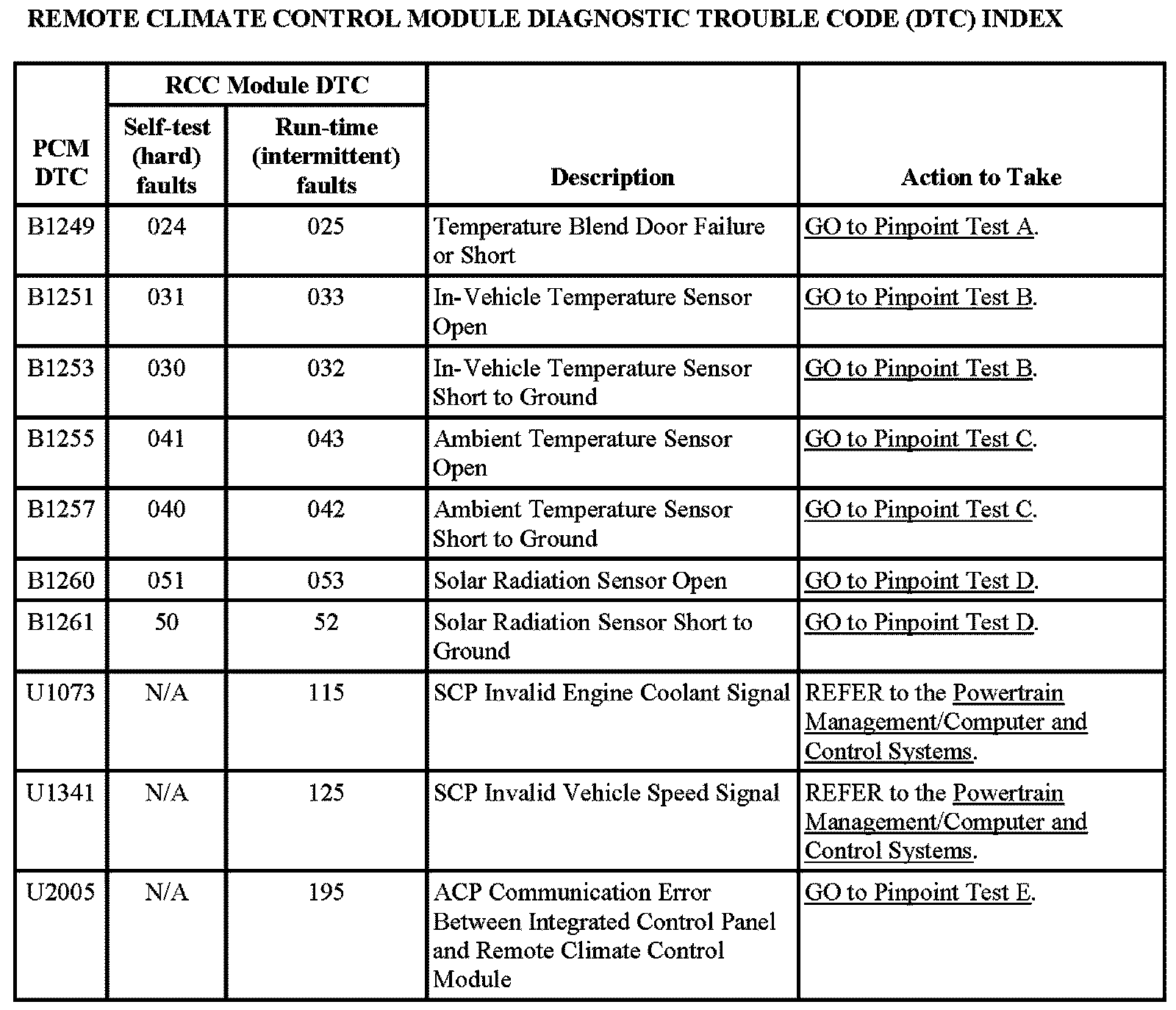 Remote Climate Control Module Diagnostic Trouble Code Index