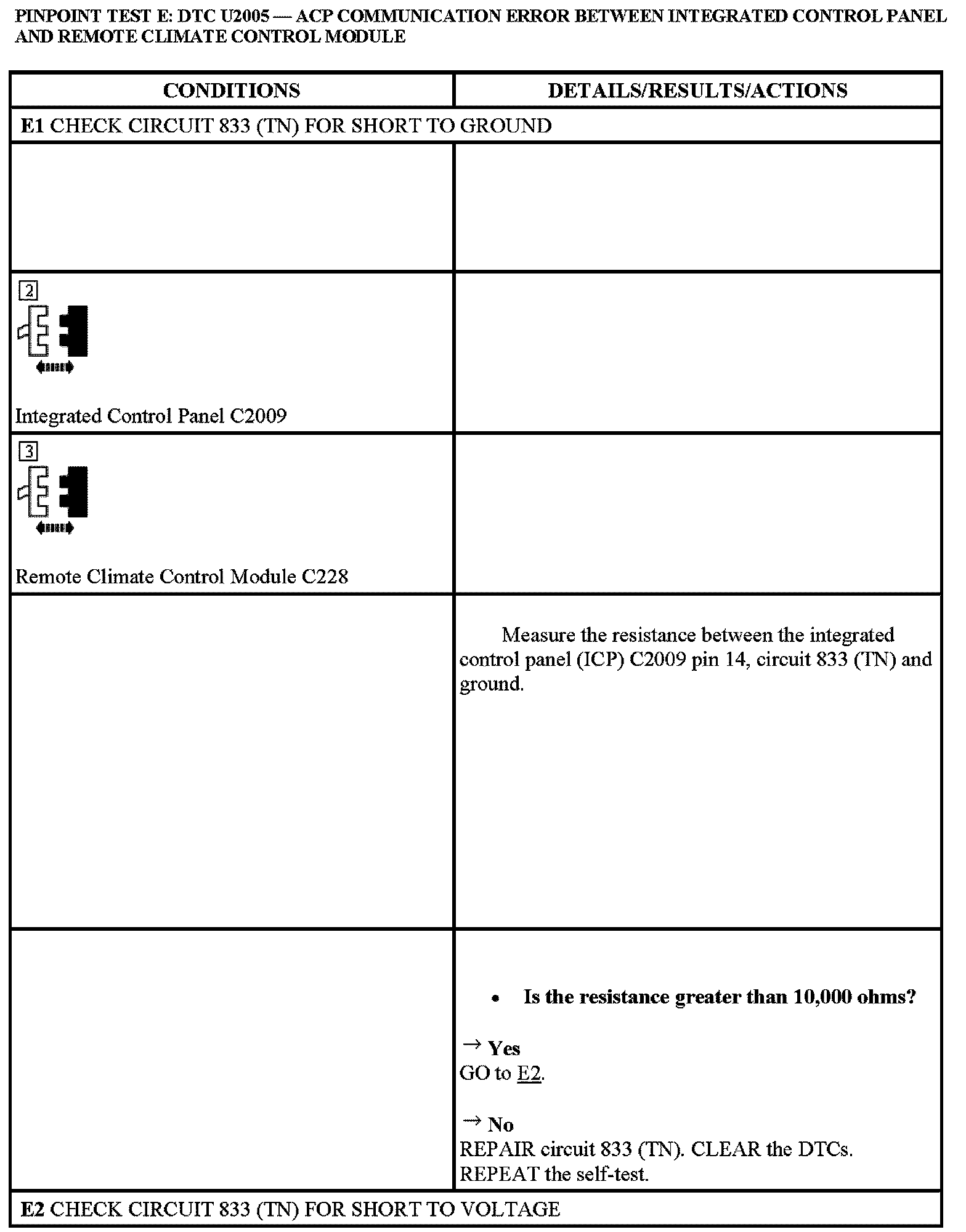 Test E: DTC U2005 - ACP Communication Error Between Integrated Control Panel And Remote Climate Control Module