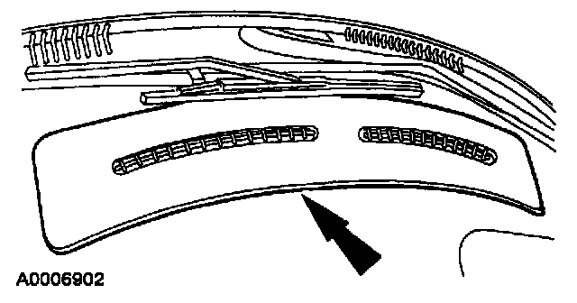 NOTE: Lift upwards on the rear edge of the defroster grille then slide rearward to remove.