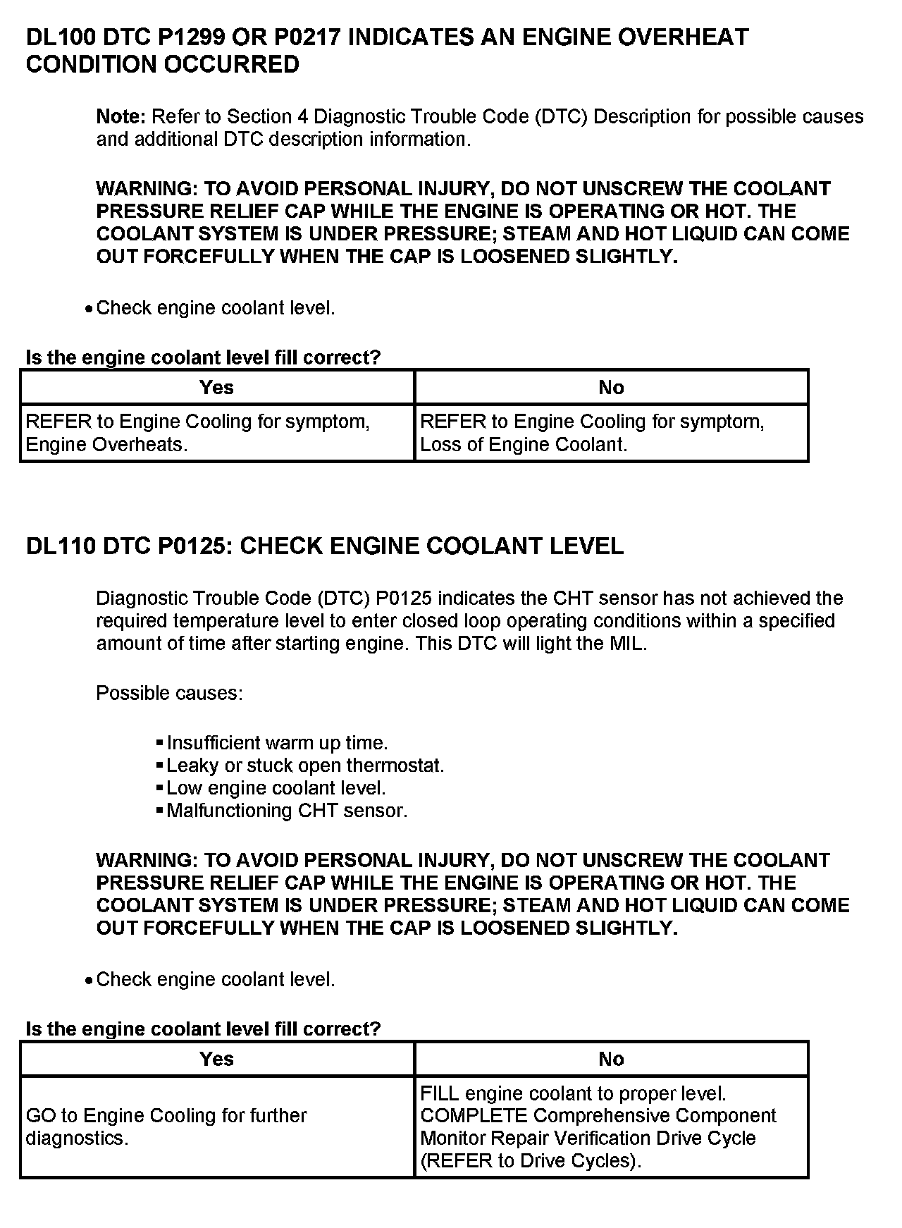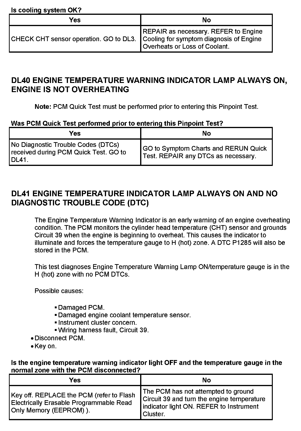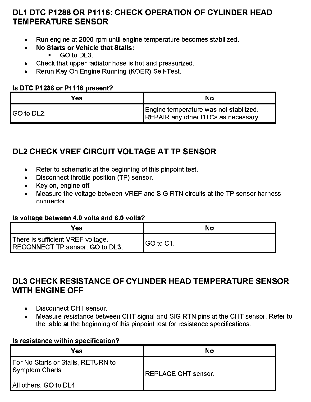 Cylinder Head Temperature Sensor Expected Values Table: