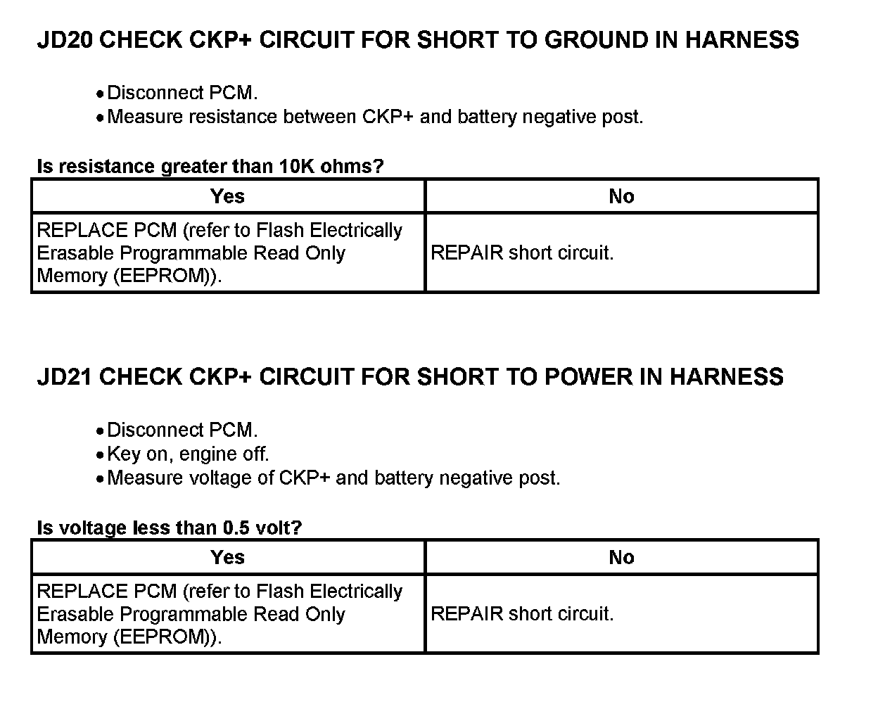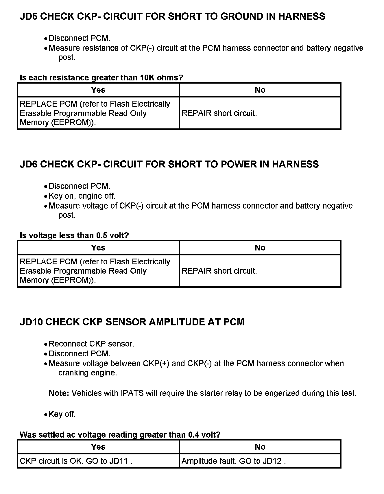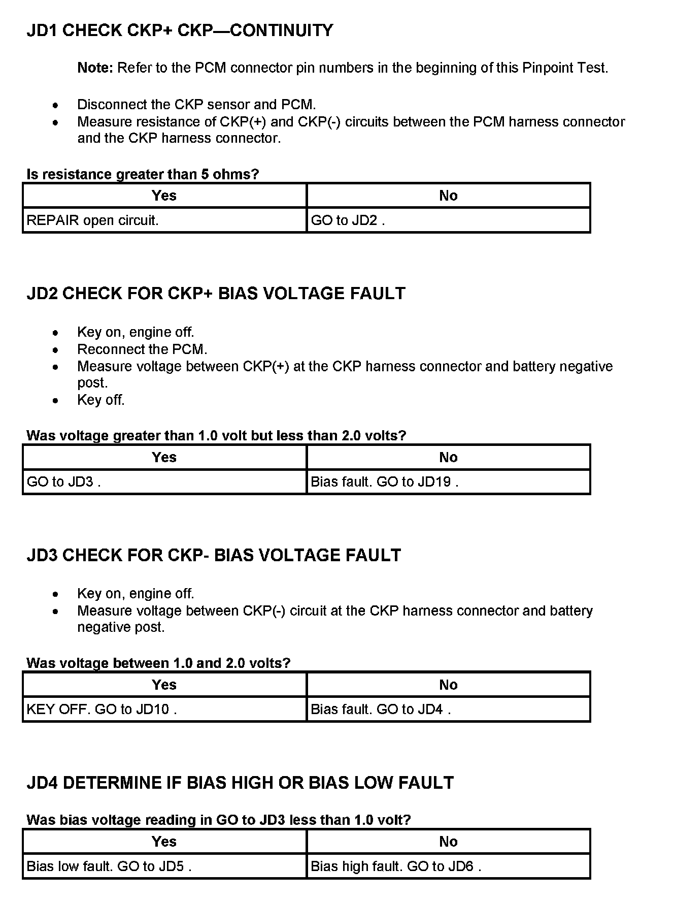 Tests JD: Crankshaft Position (CKP) Sensor