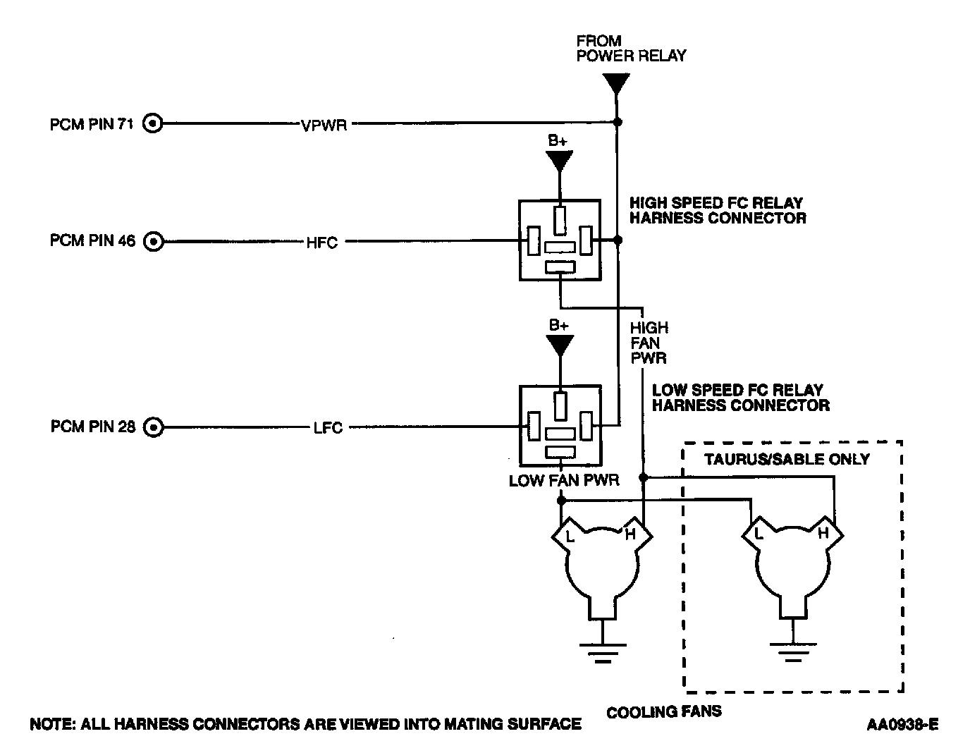Taurus/Sable, Continental (Low and High Speed Fan Control (FC) Relay):