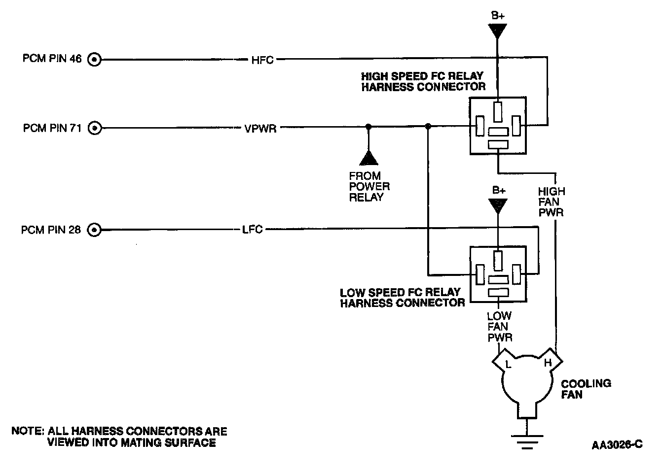 - Harness circuits: VPWR, B+, HFC, LFC, IGN START/RUN, FAN(s) PWR
