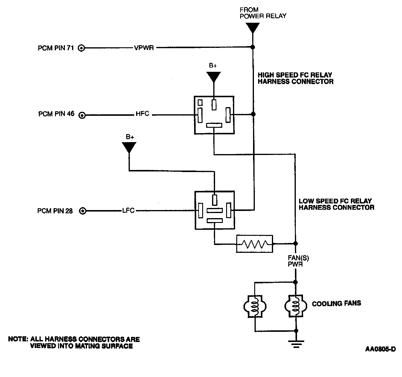 Crown Victoria/Grand Marquis, Town Car (Low and High Speed Fan Control (FC) Relay):