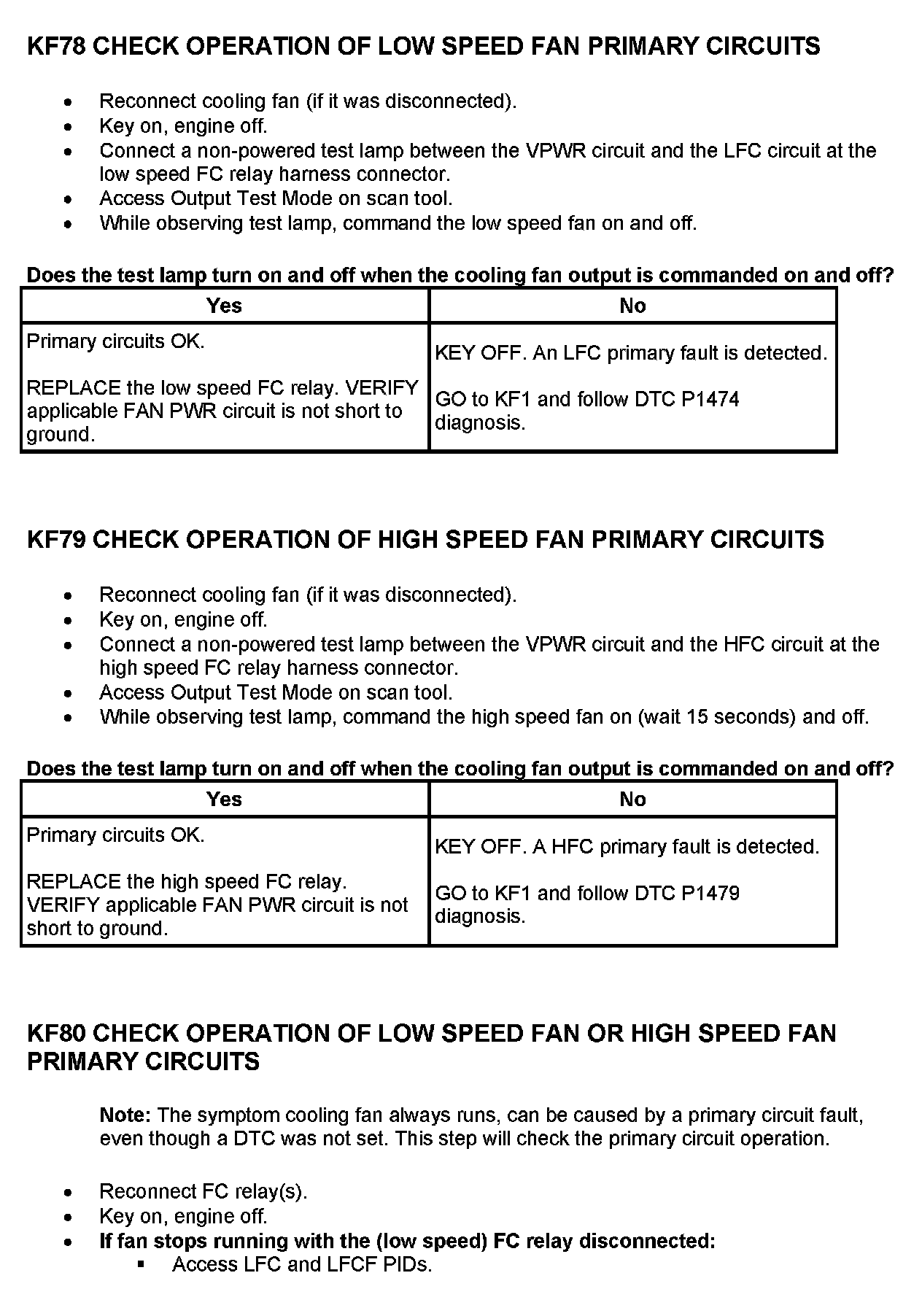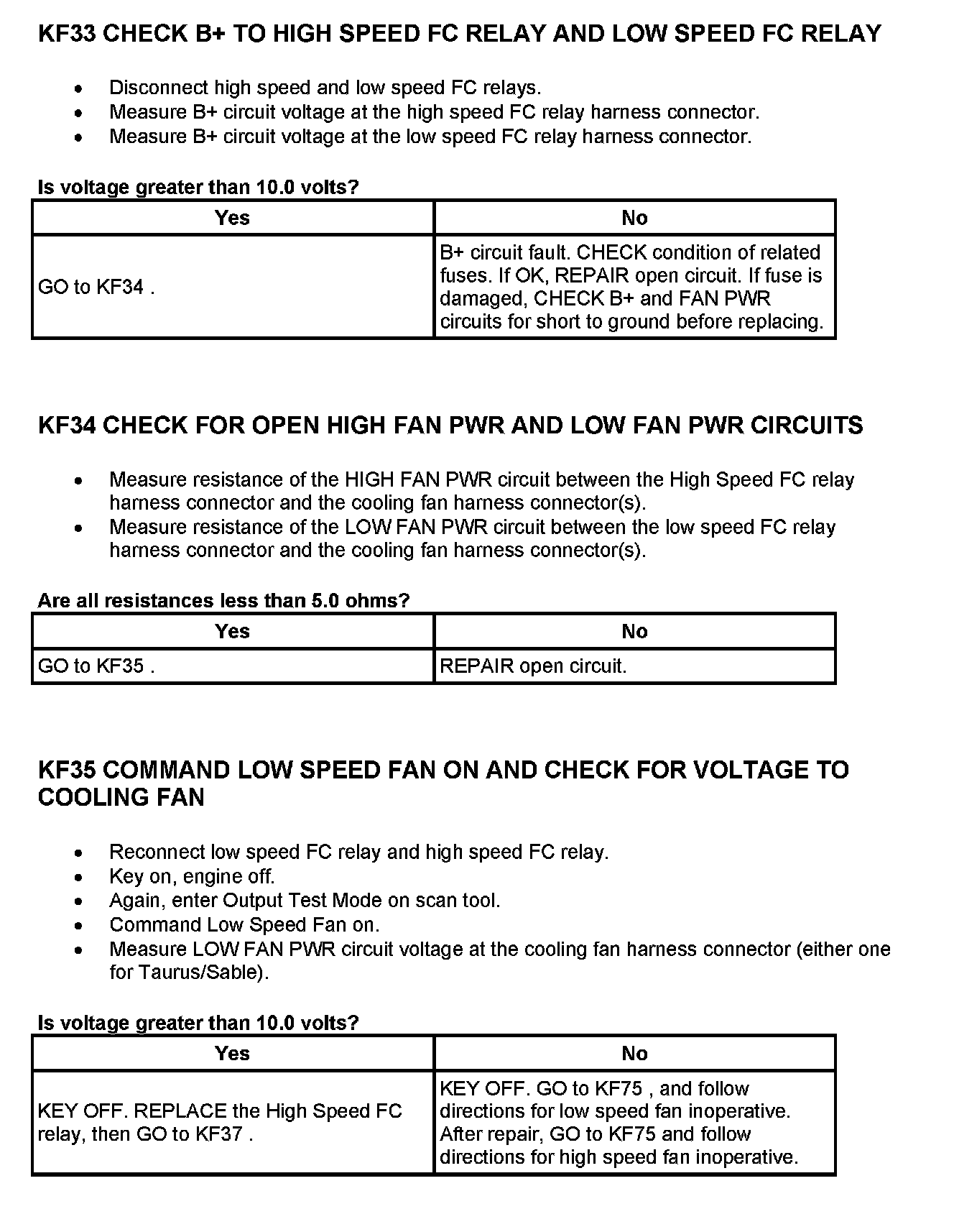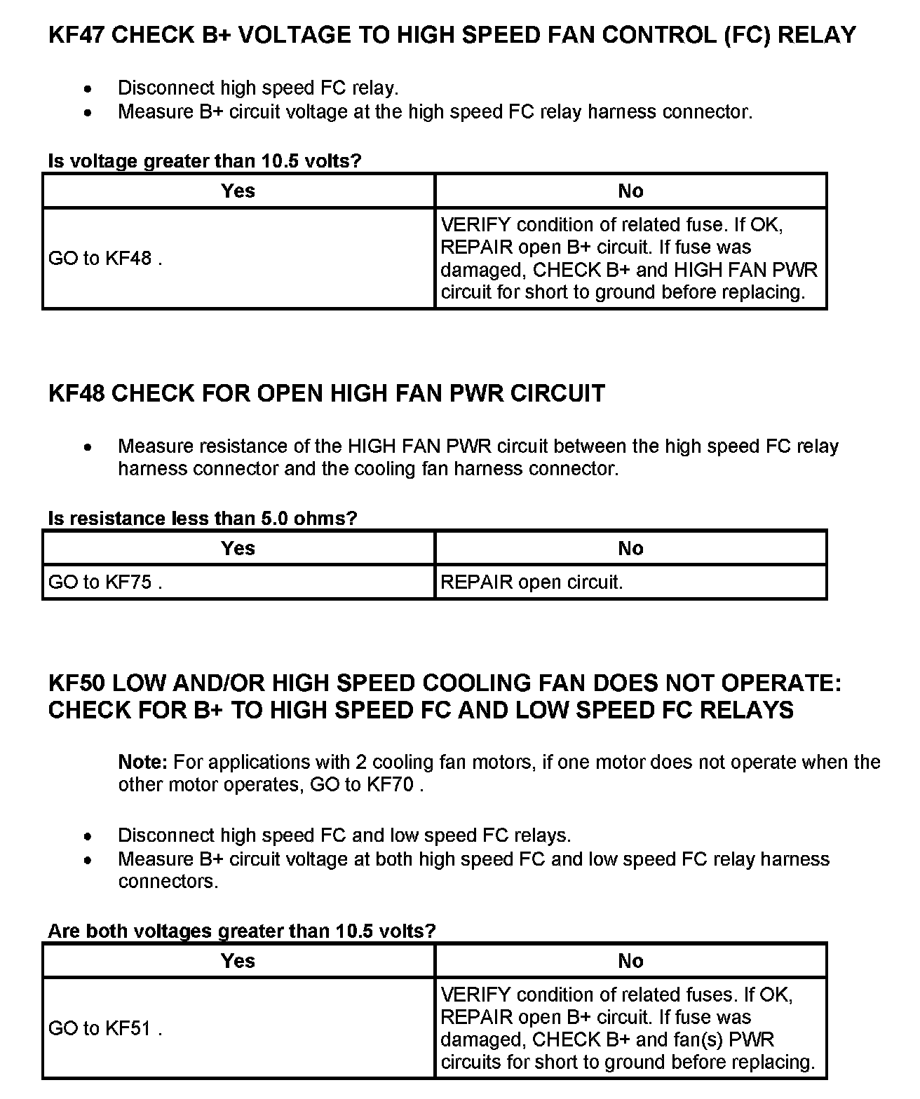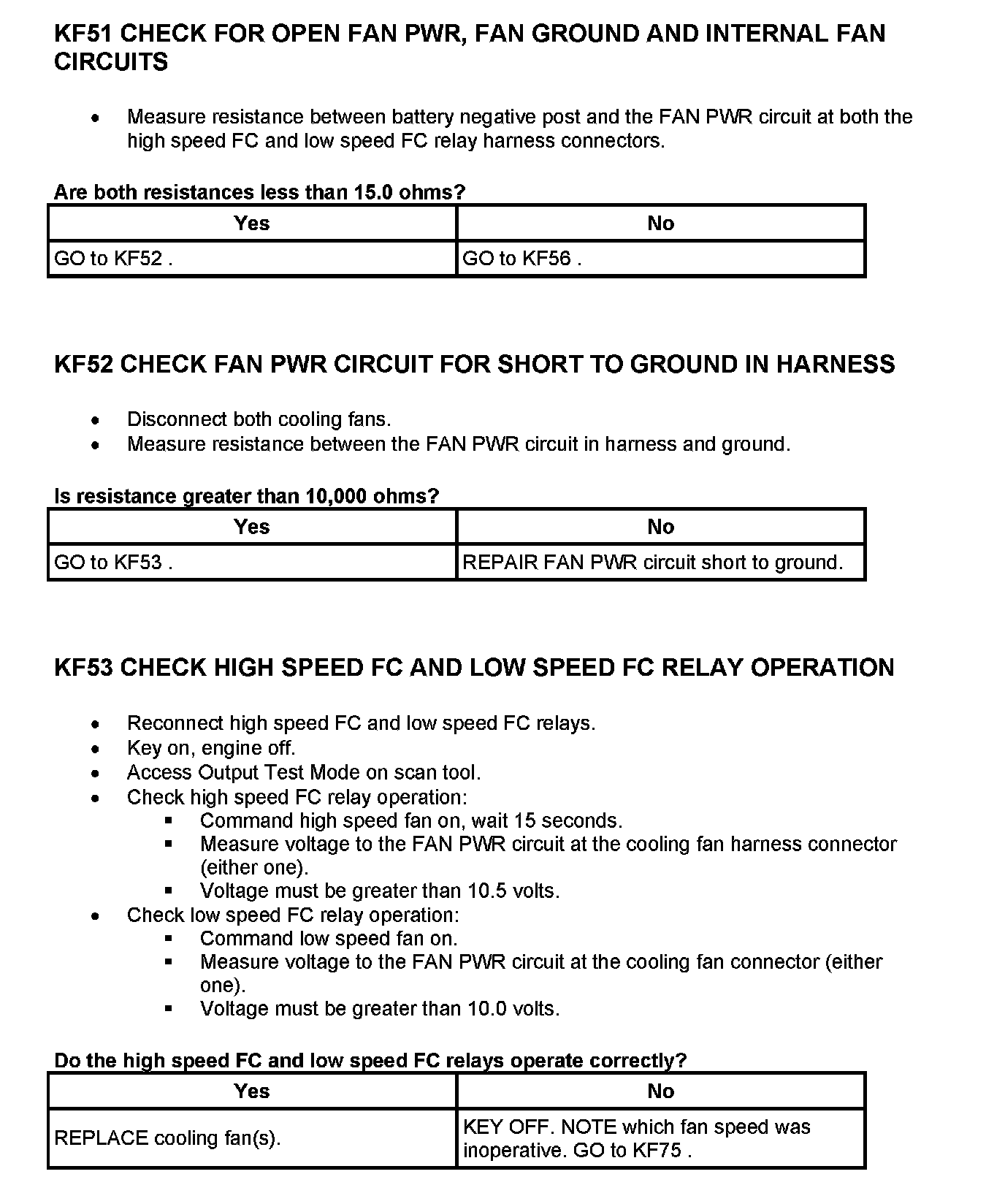 Tests KF: Fan Control (FC) Relay