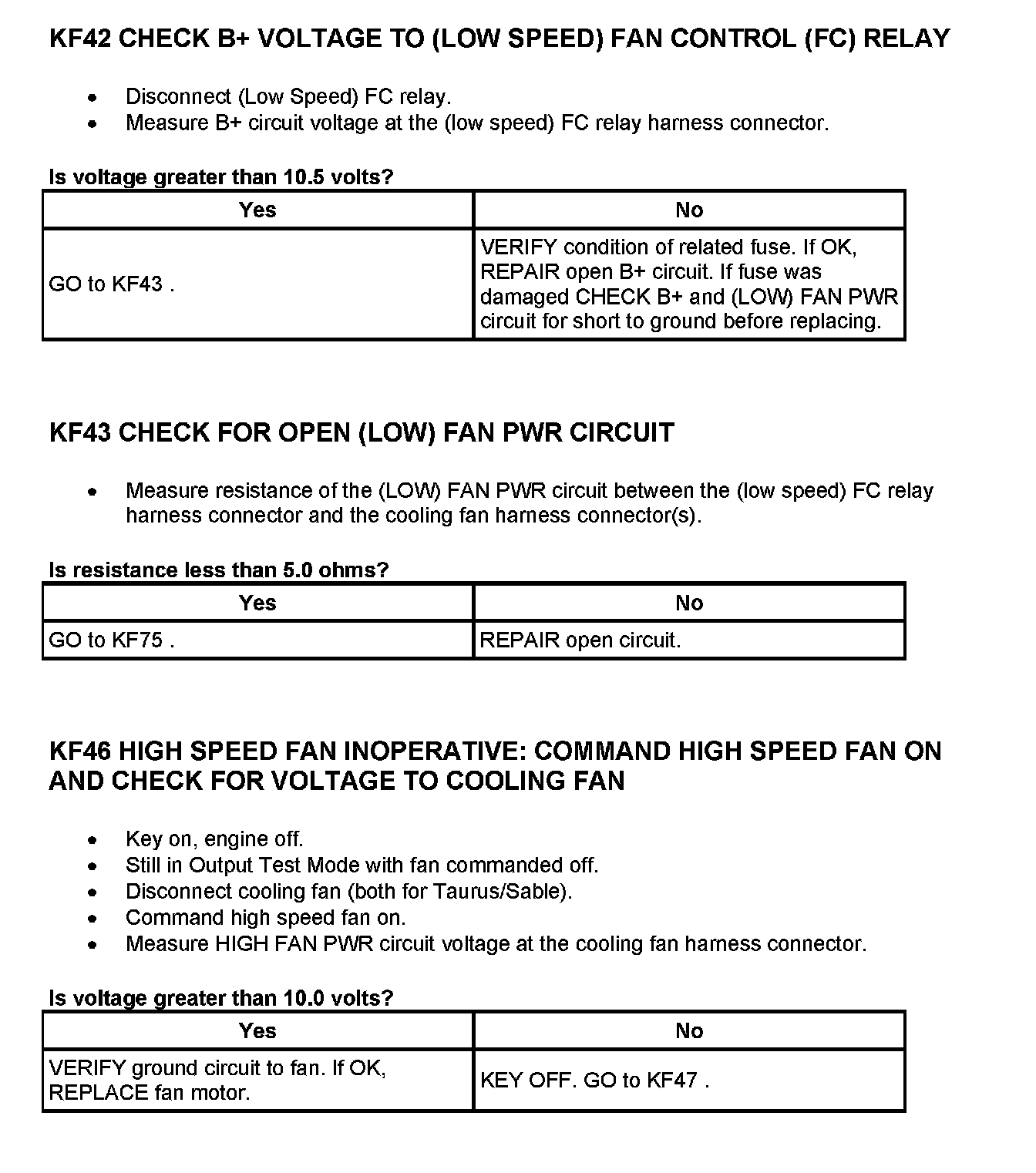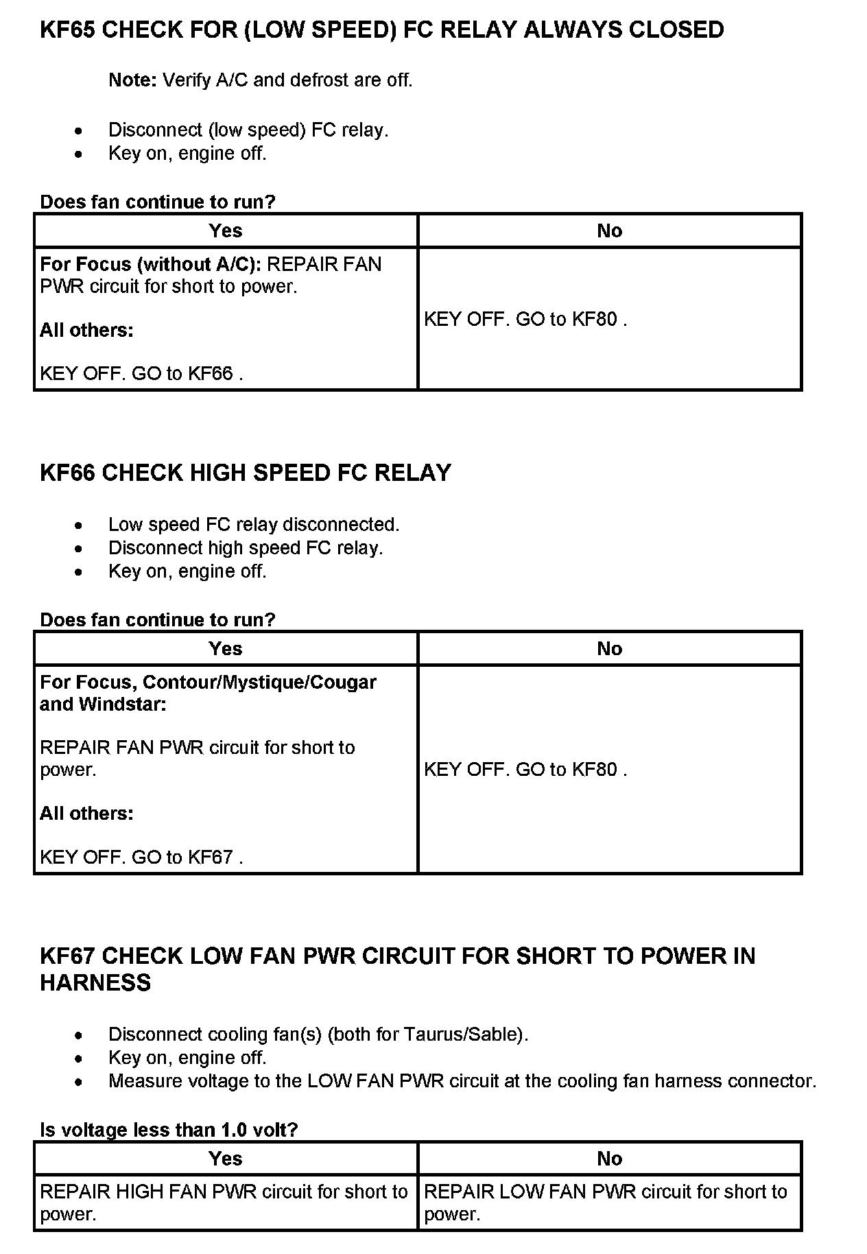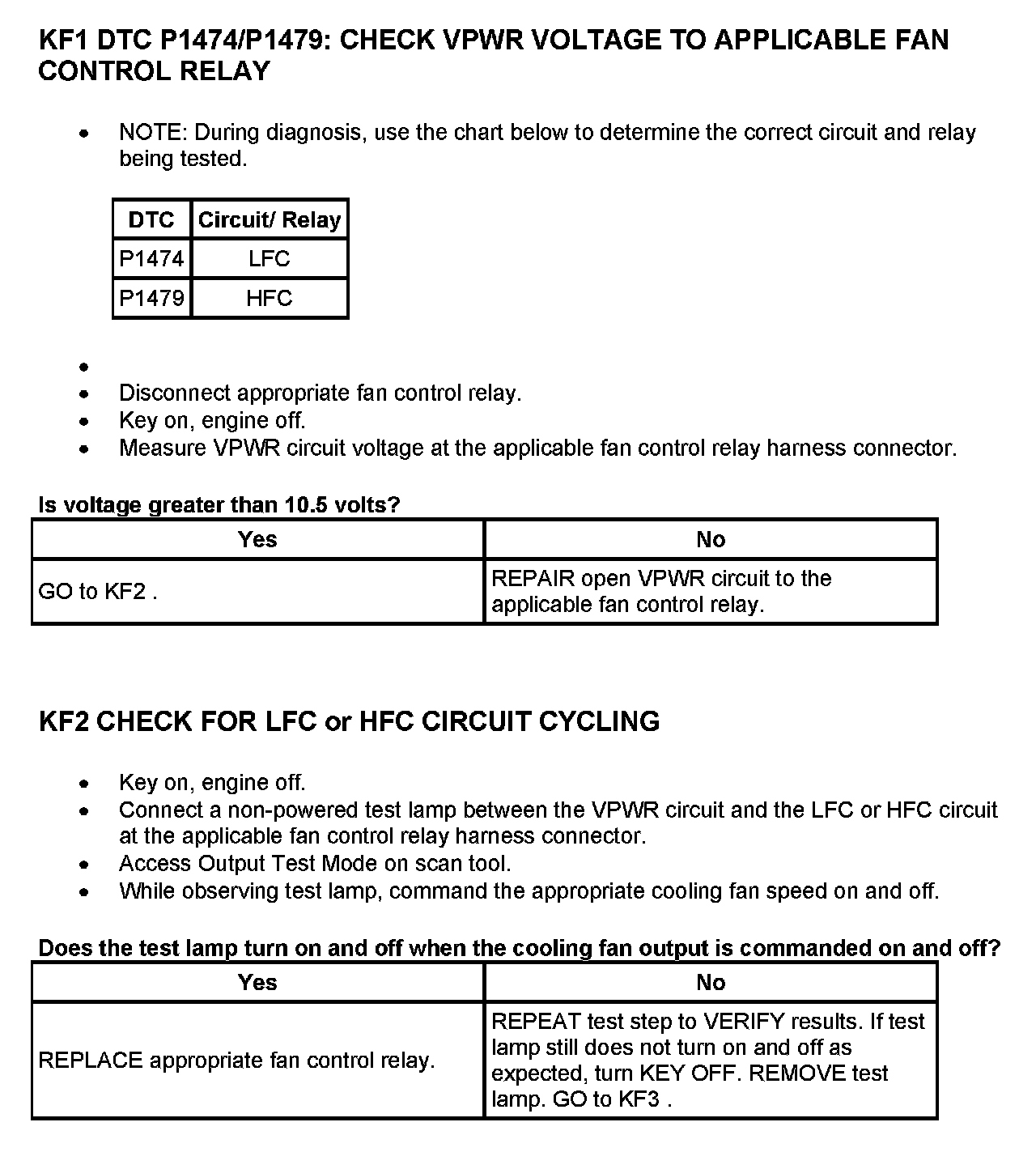 Tests KF: Fan Control (FC) Relay