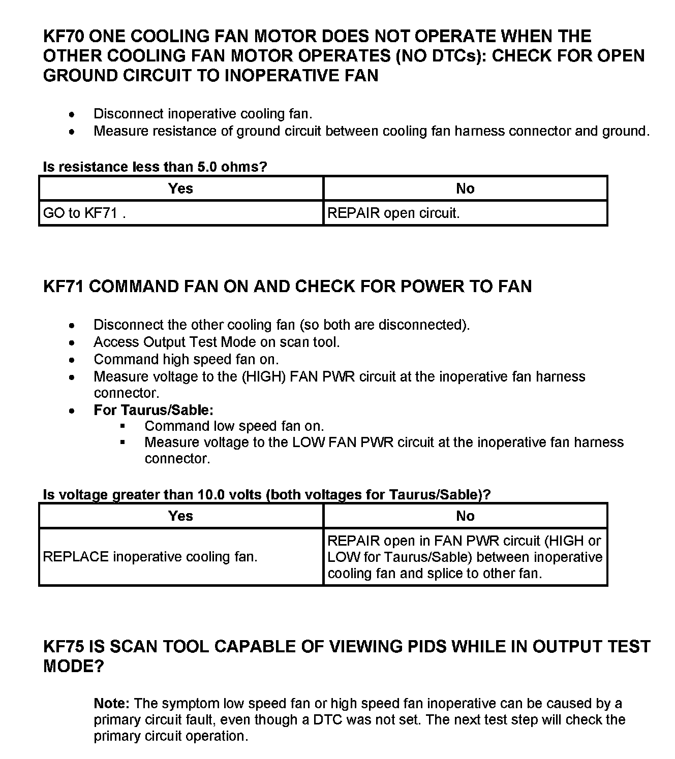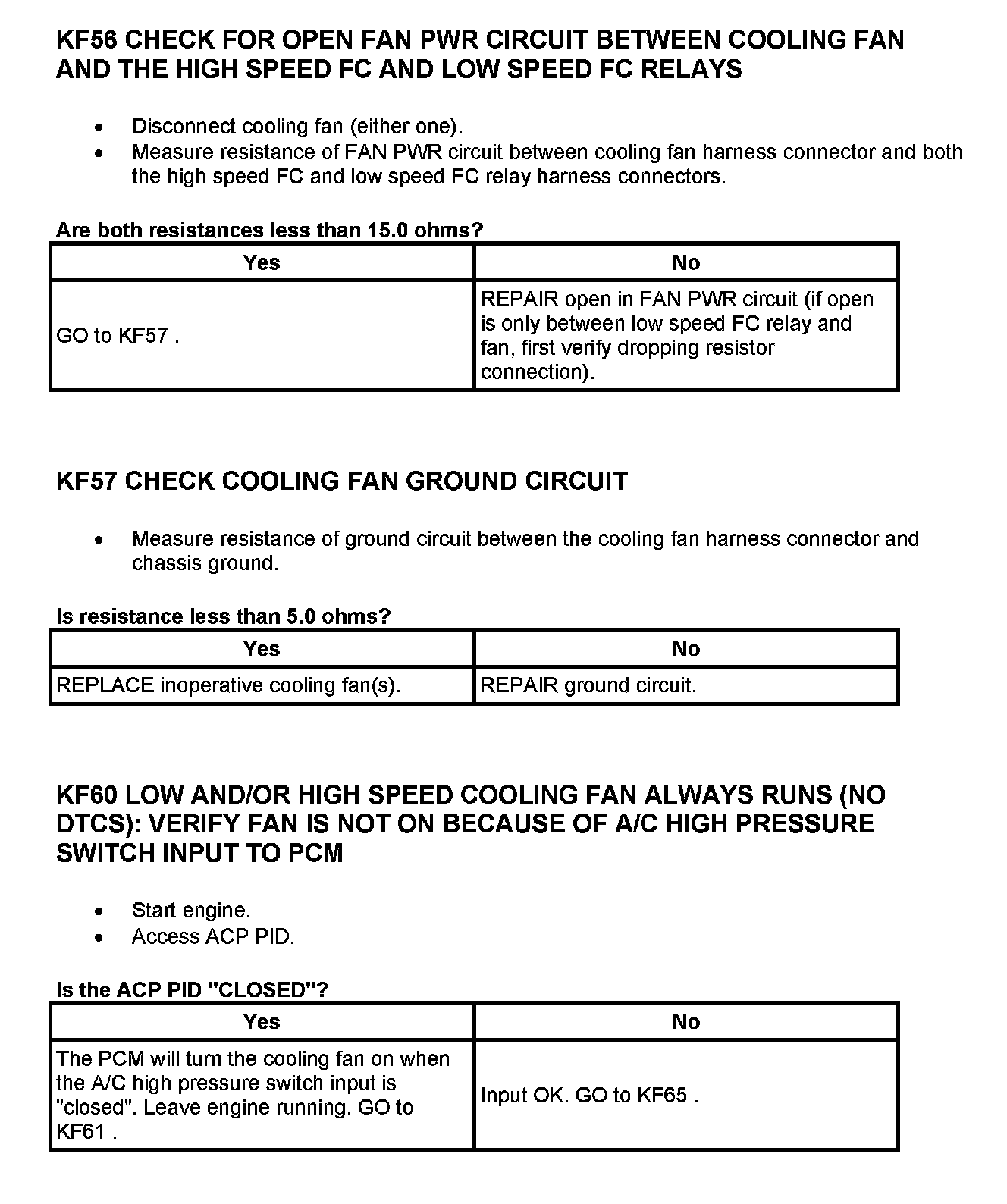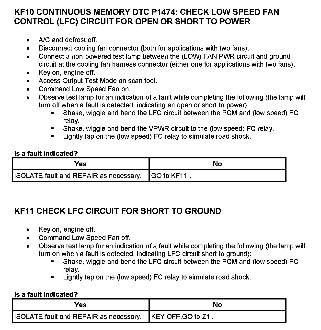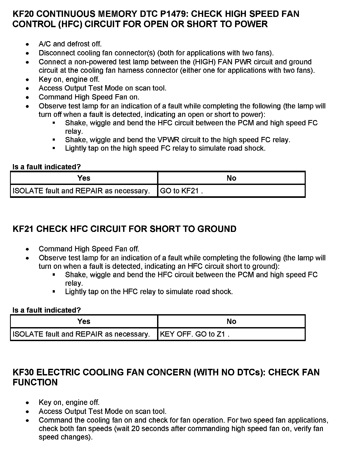 Tests KF: Fan Control (FC) Relay