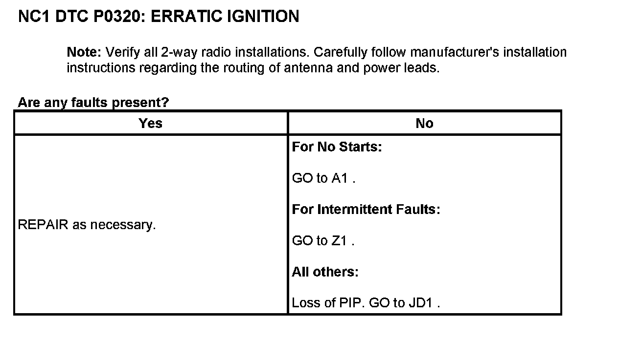 Tests NC: Ignition Engine Speed Input Circuit