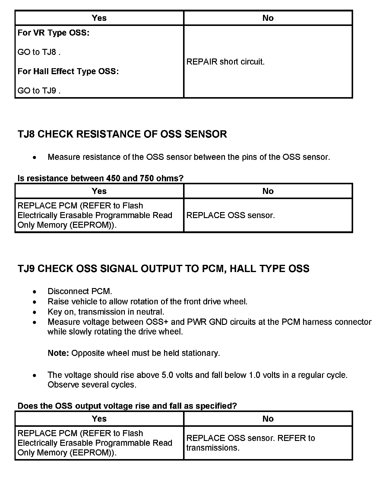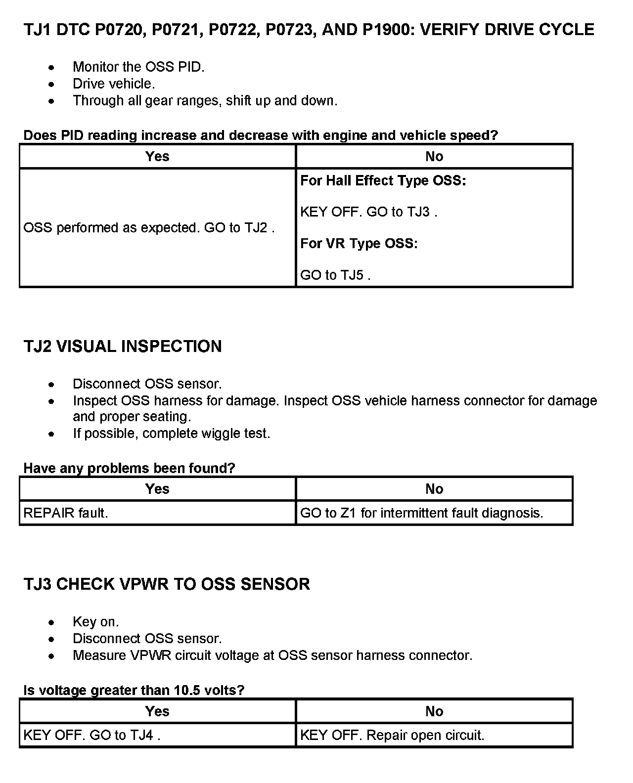 Tests TJ: Output Shaft Speed (OSS) Sensor