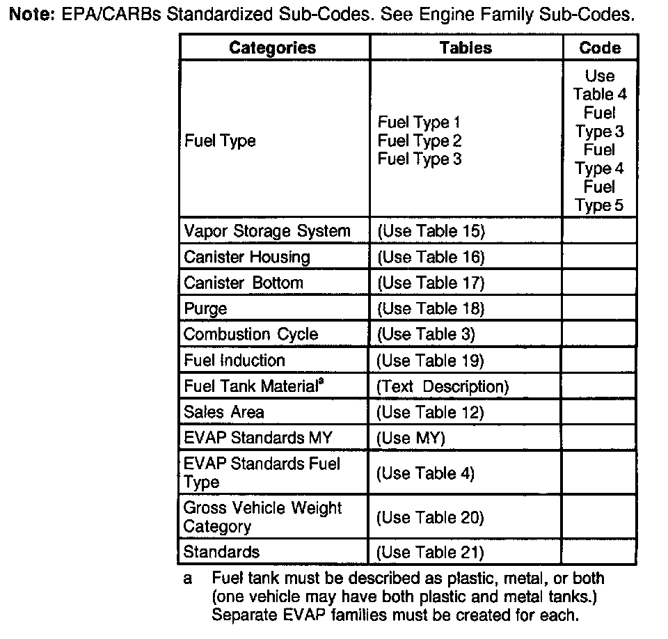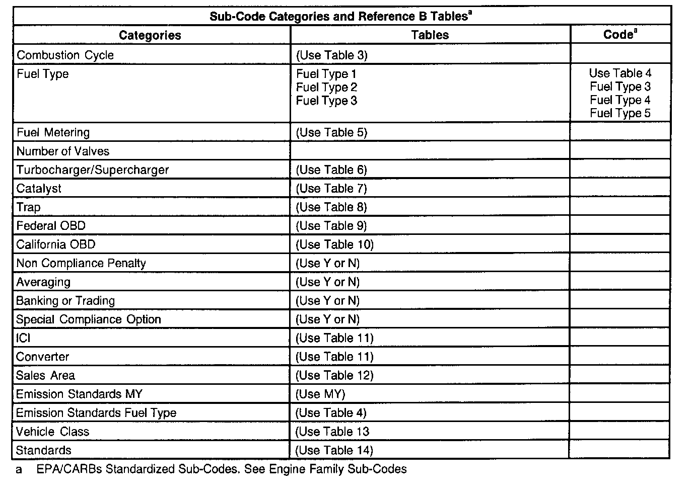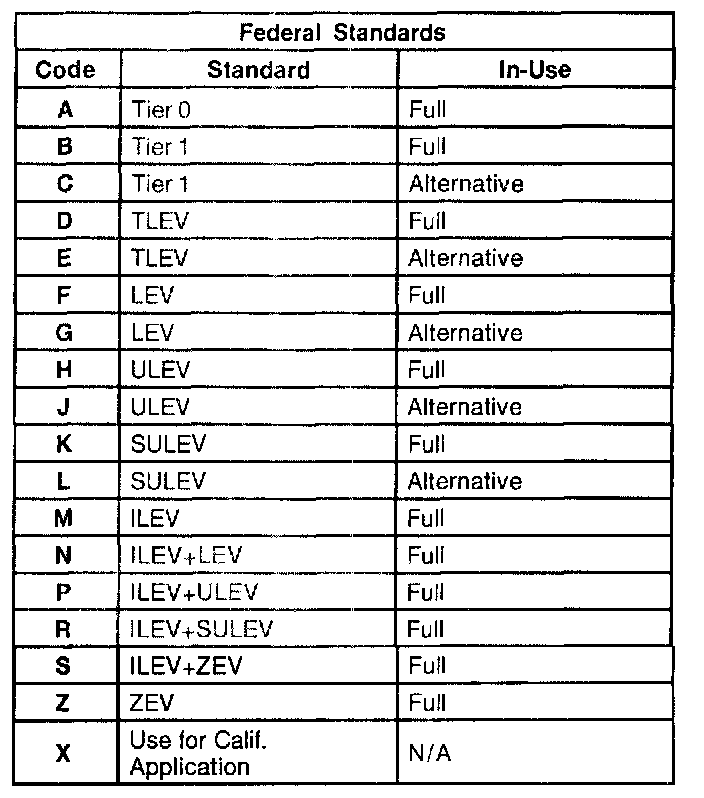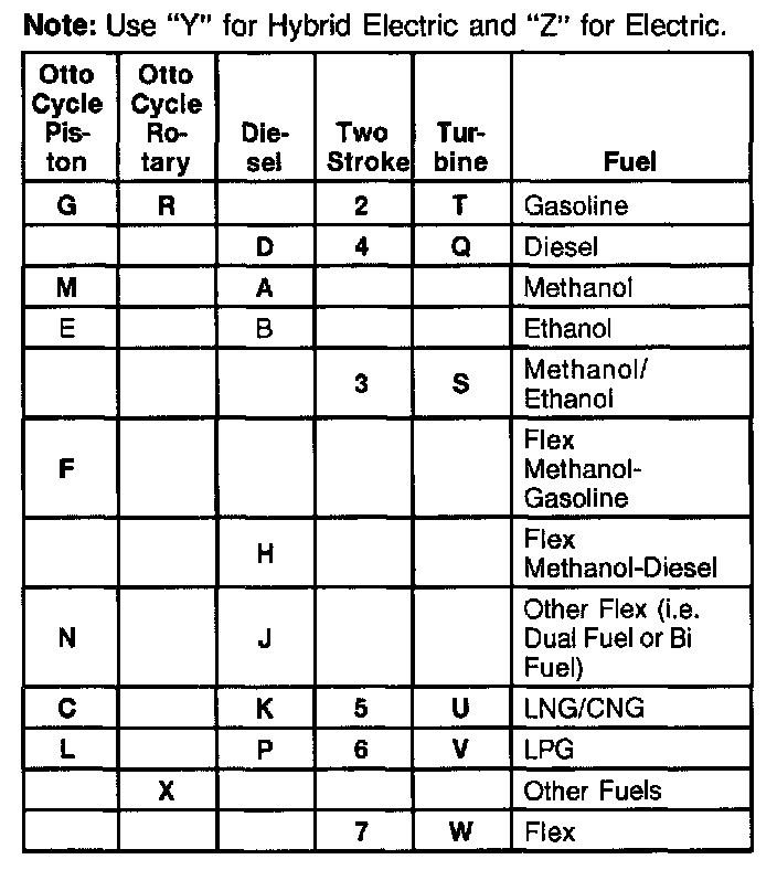 Manufacturers must use a standardized system for identifying their individual engine families. The system described below was developed by the Environmental Protection Agency (EPA) in 1991 to meet new regulatory requirements for 1994 and later model years.