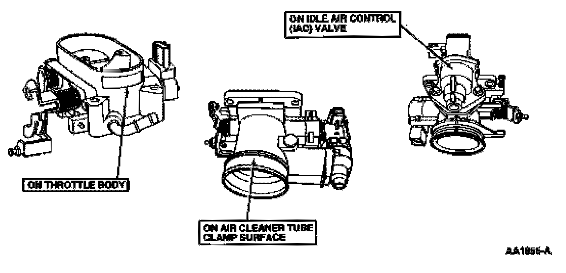 1. Idle air control (IAC) valve assembly mounted directly to the throttle body assembly (some vehicles).