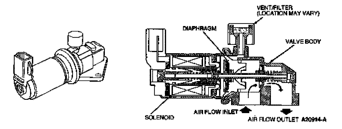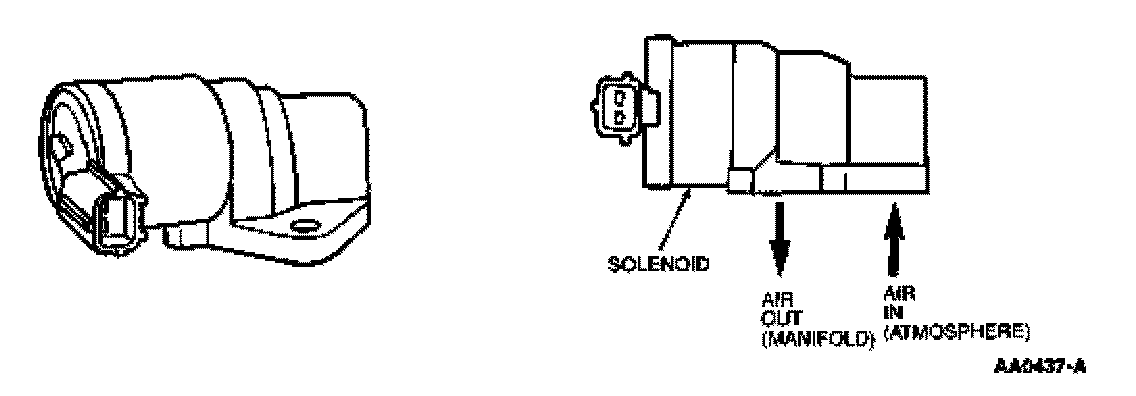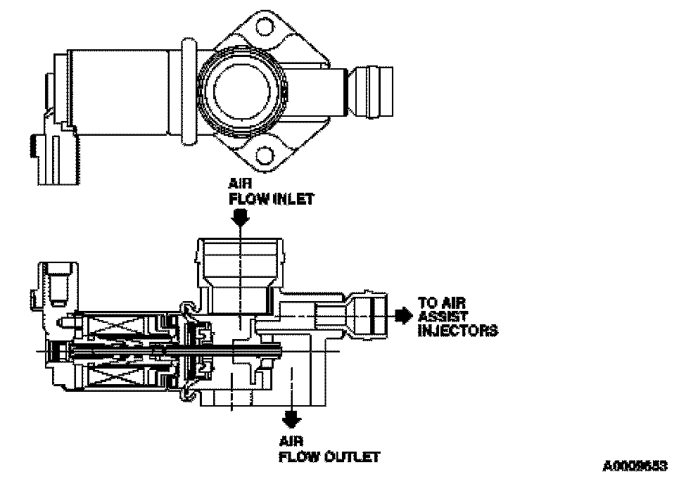 On applications with air-assisted injectors, the IAC valve (Figure 109)also supplies a small amount of air into the path of the fuel injectors. The jet of air causes an increase in fuel atomization at low speed and light load conditions.