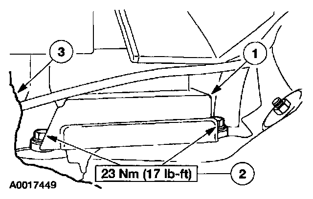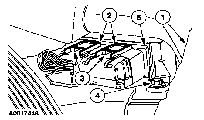 WARNING: The restraints control module (RCM) orientation is critical for proper system operation. If a vehicle equipped with an air bag supplemental restraint system (SRS) has been involved in a collision in which the center tunnel area has been damaged, inspect the mounting and bracket for deformation. If damaged, the RCM must be replaced whether or not the air bags have deployed. In addition, make sure the area of the RCM mounting is restored to its original condition.