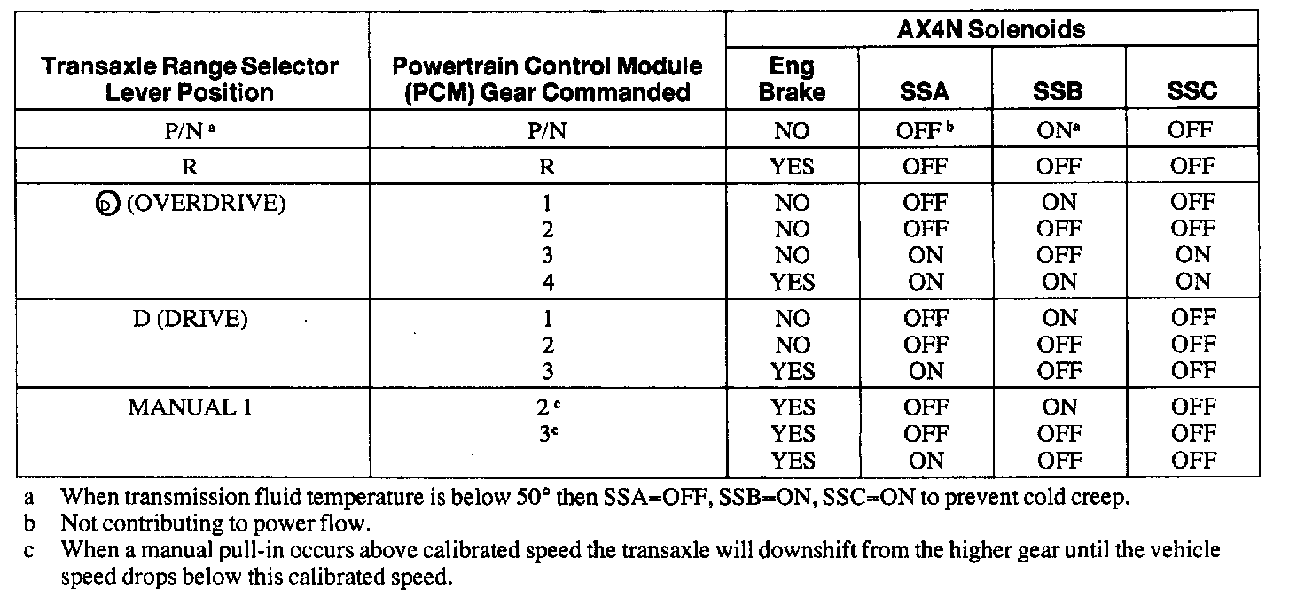 AX4N - Shift Solenoid Operation Chart: